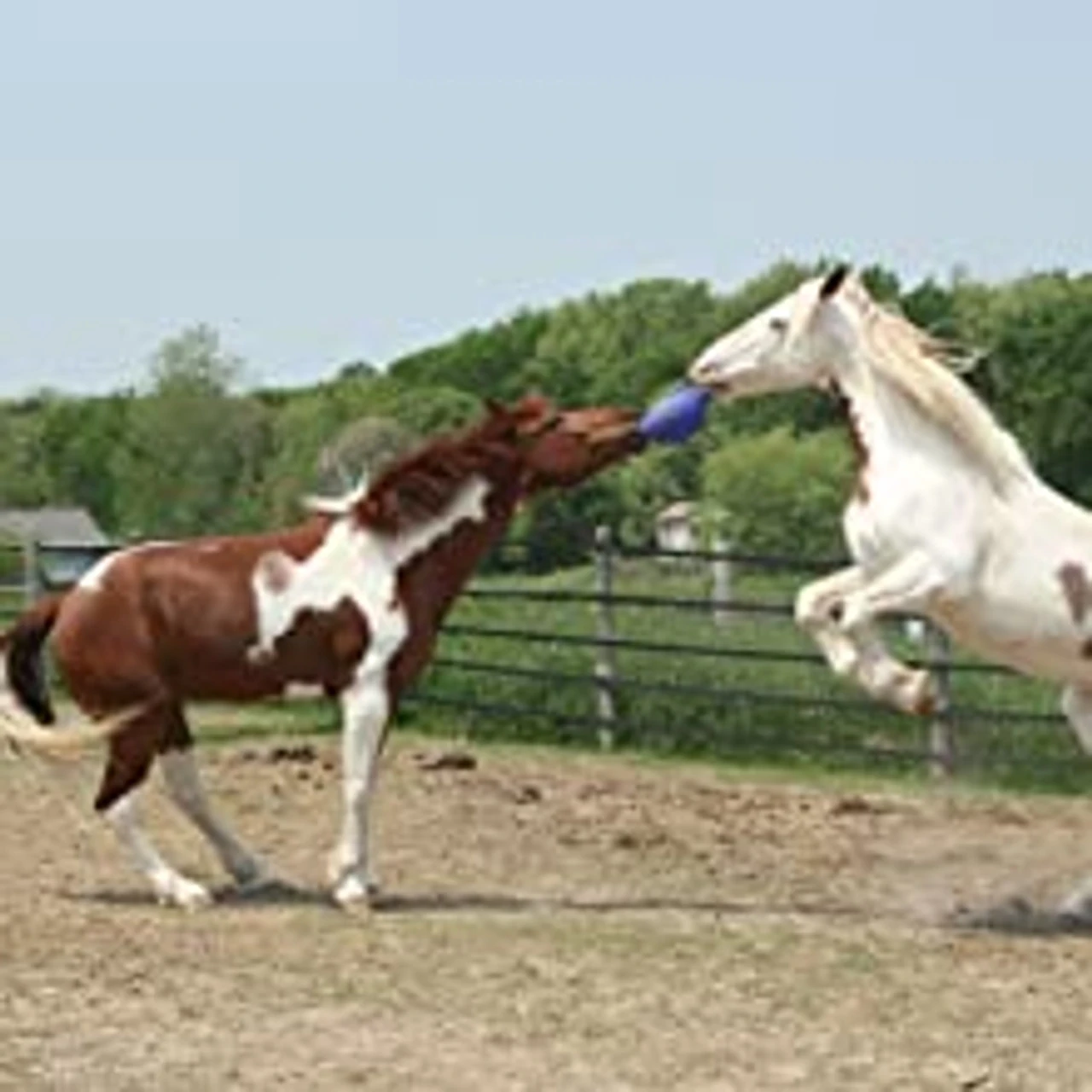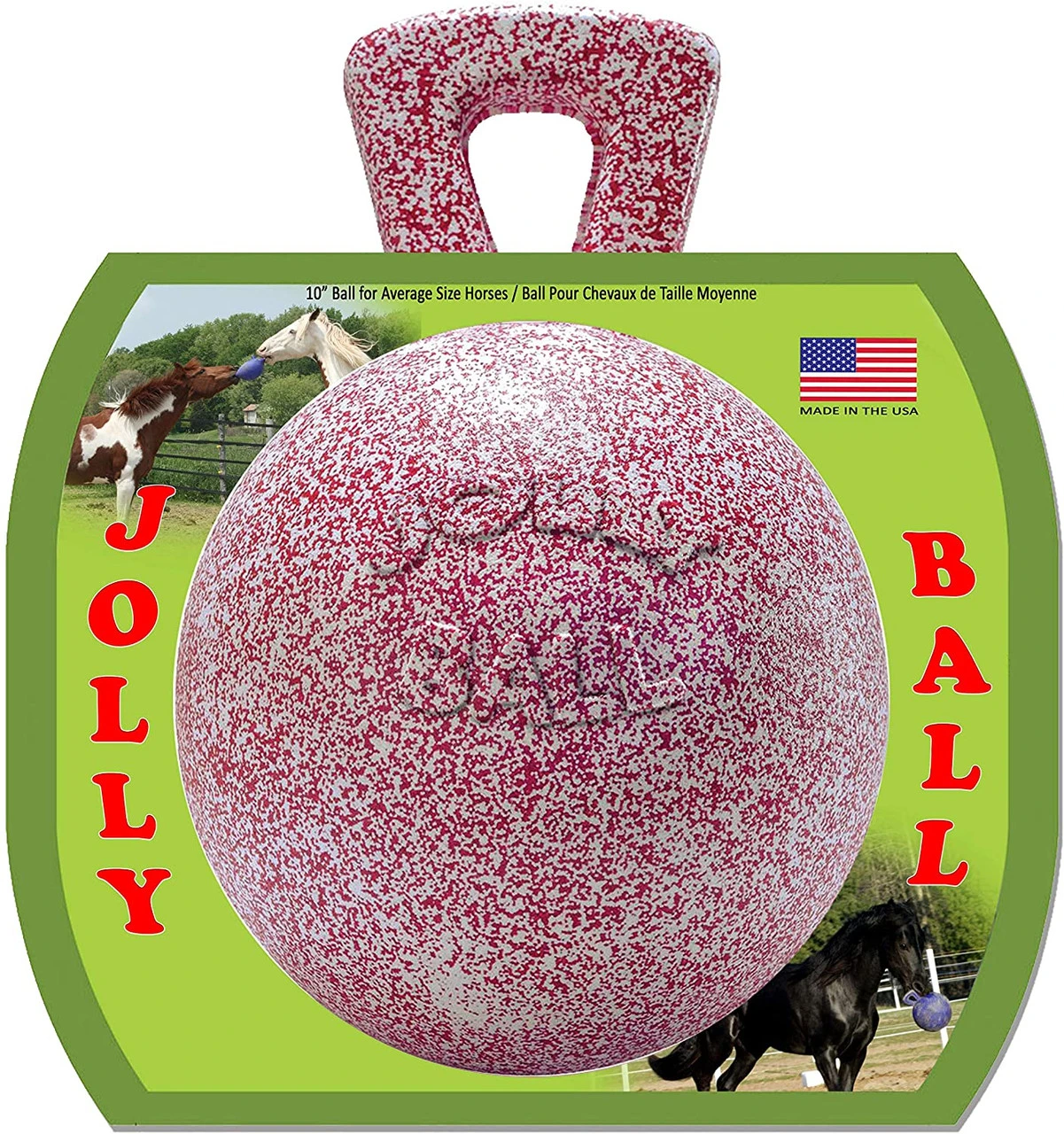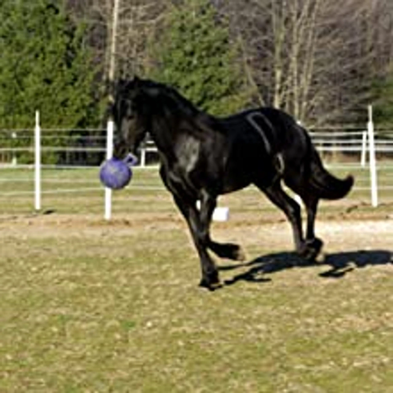 Help alleviate stall boredom with Jolly Ball Horse Toy. Crafted using durable materials, it’s made to last. And unlike other ball toys, this one features an air-free design, maintaining its shape even if punctured from chewing or from playing. This versatile toy’s handle has a large hole for hanging in stalls or throwing in pasture. It’s made in the USA with safe materials and has multiple scents that horses love. Help to break your equine friend’s boredom with Horsemen’s Pride Jolly Ball Horse Toy.