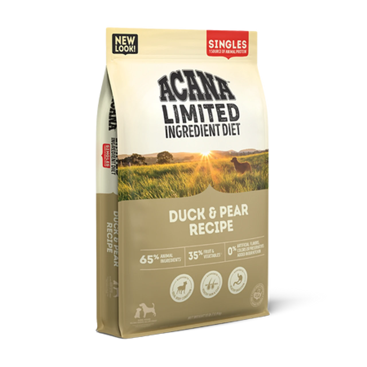 Loaded with 60% free-run duck to nourish your dog according to his evolutionary needs, ACANA Duck & Pear contains a single, easily digestible animal protein.