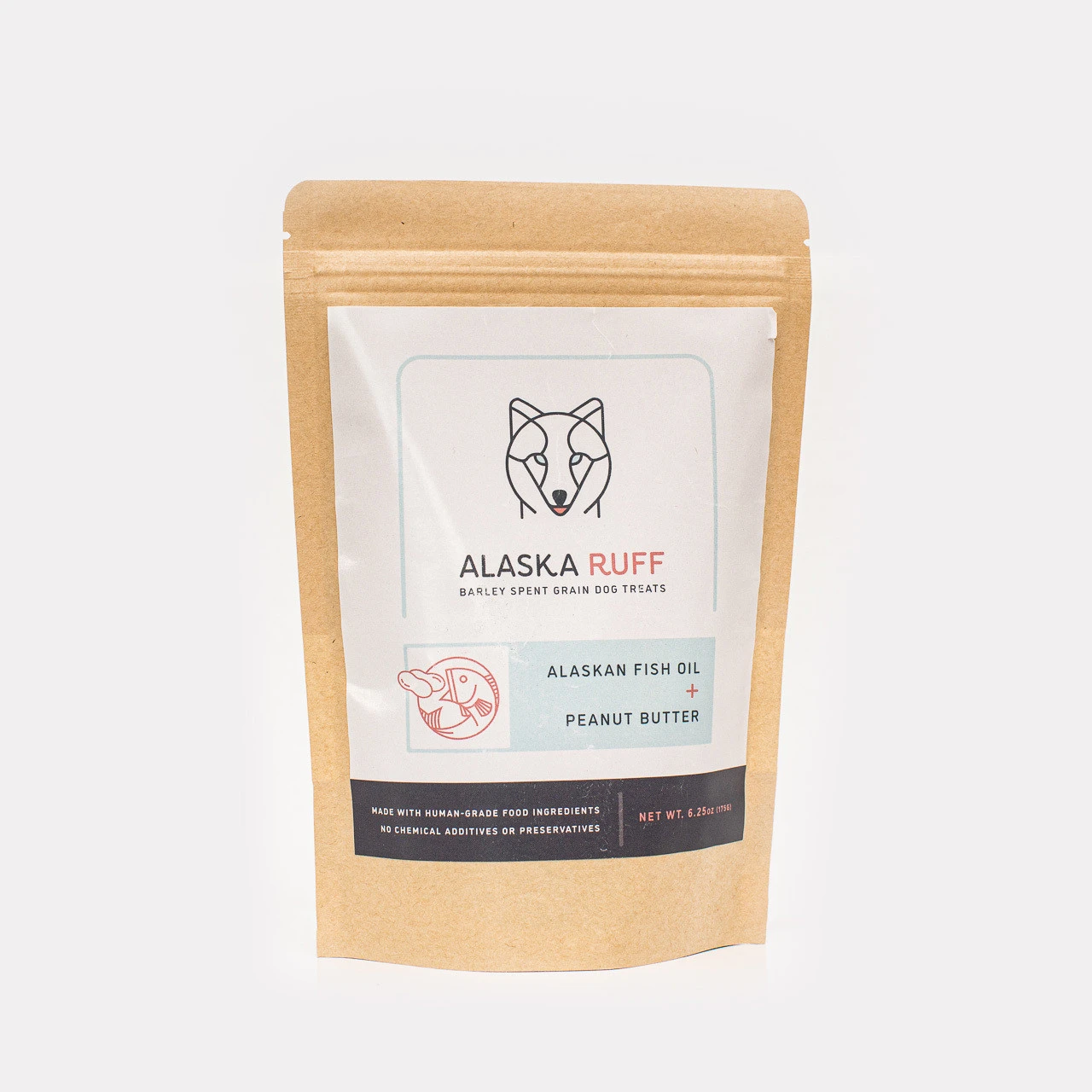 The perfect blend of beer barley from a local brewery, Alaskan fish oil, and peanut butter.