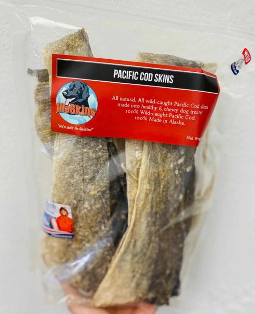TRY OUT OUR BIGGEST BAG OF OUR FABULOUS WILD COD SKINS FOR YOUR DOG. Â 9OZ OF WHOLE COD SKINS.