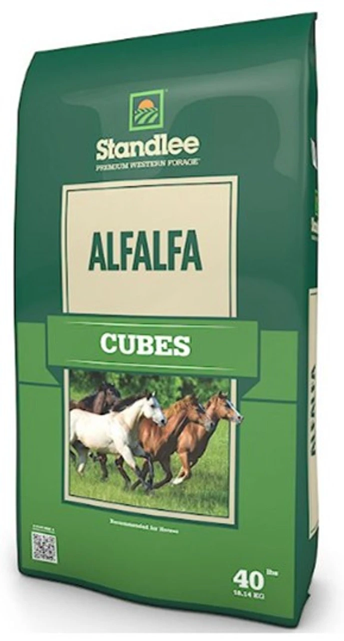 • Standlee Premium Western Forage Alfalfa Cubes are low sugar, moderate protein, high calorie and fiber feed recommended for growing and underweight horses, horses with specific dietary needs, gastric ulcers, pregnancy, or lactating maresÂ