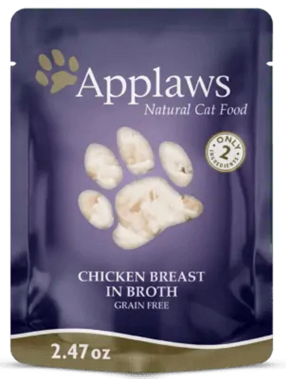 Applaws Chicken Breast in Broth Pouch contains nothing more than the ingredients listed and is a natural complementary pet food for adult cats.