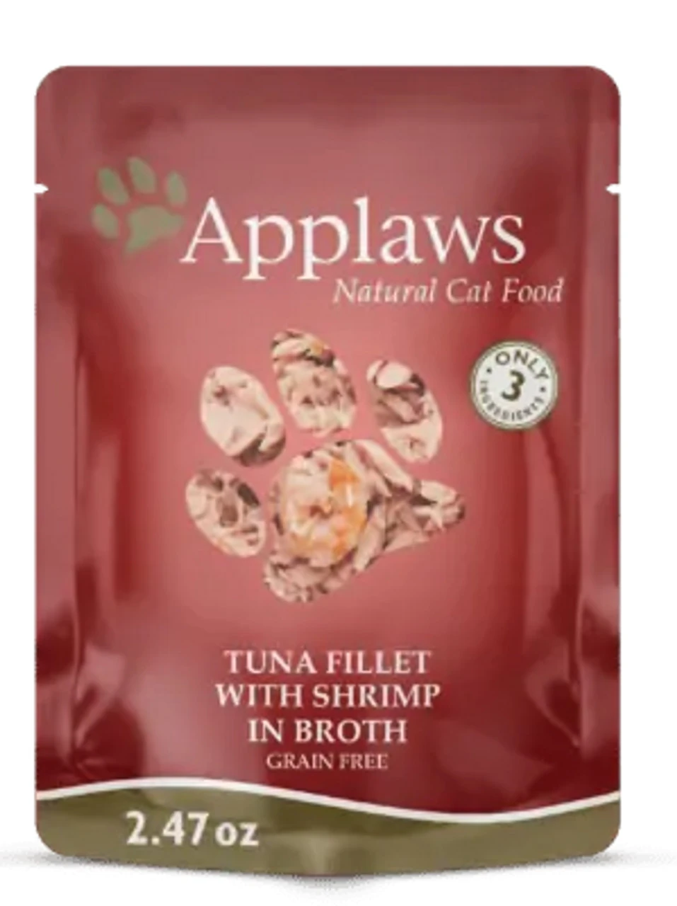 Applaws Tuna Fillet with Shrimp in Broth Pouch contains nothing more than the ingredients listed and is a natural complementary pet food for adult cats.