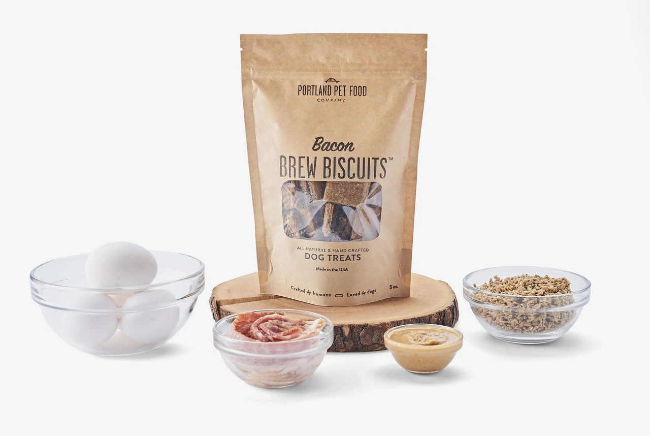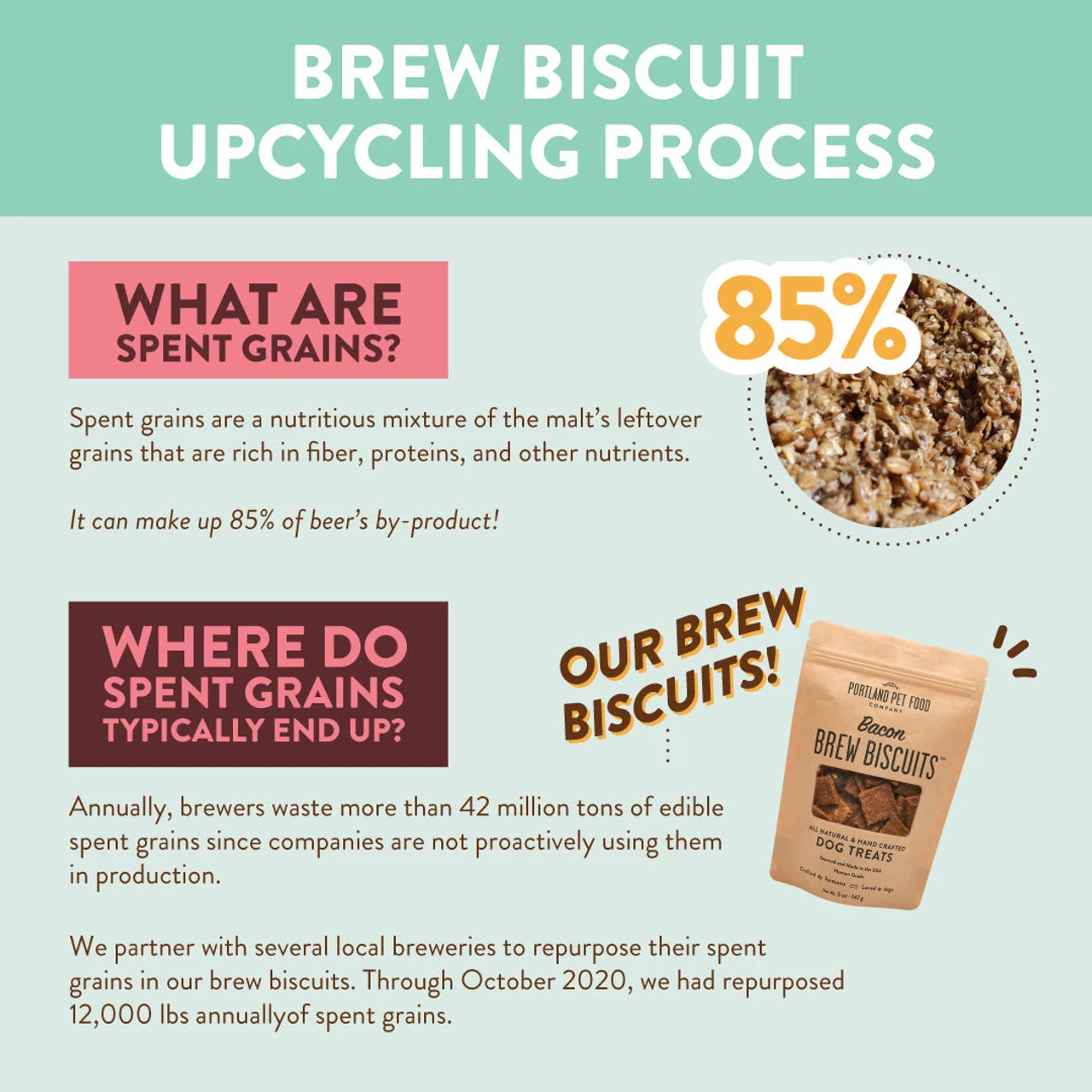 Brew Biscuits with Bacon are made with repurposed spent grains harvested from your favorite local Portland breweries. These biscuits are the closest your dog can get to enjoying a pint of your favorite beer right alongside you! Brew Biscuits with Bacon contain no alcohol or hops, just the highest quality ingredients sourced directly from local breweries in the Pacific Northwest.