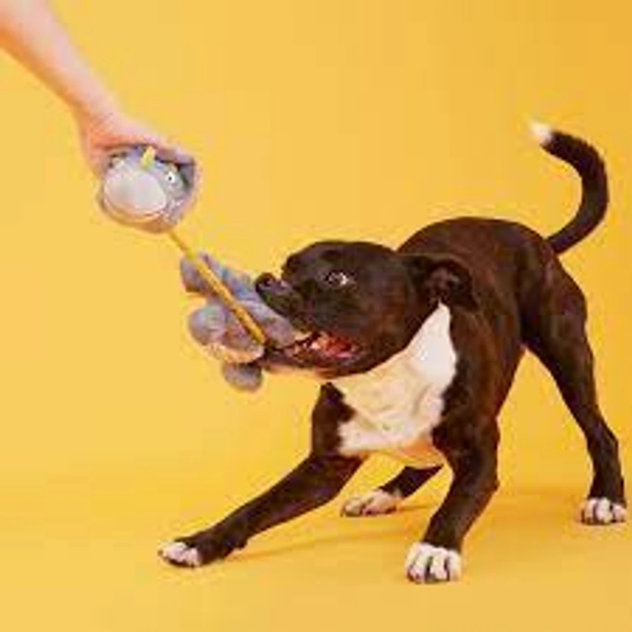 This triceratops dog toy is your pup’s new favorite prehistoric plaything. Herbert the Herbivore might look peaceful, but this vegetarian’s ready to rumble. Made with a pull-through T-shirt rope that’s great for tug-o-war, and just when you think he’s going extinct, Herbie reveals a spiky, squeaker ball bonus toy hidden inside his chewrassic body!