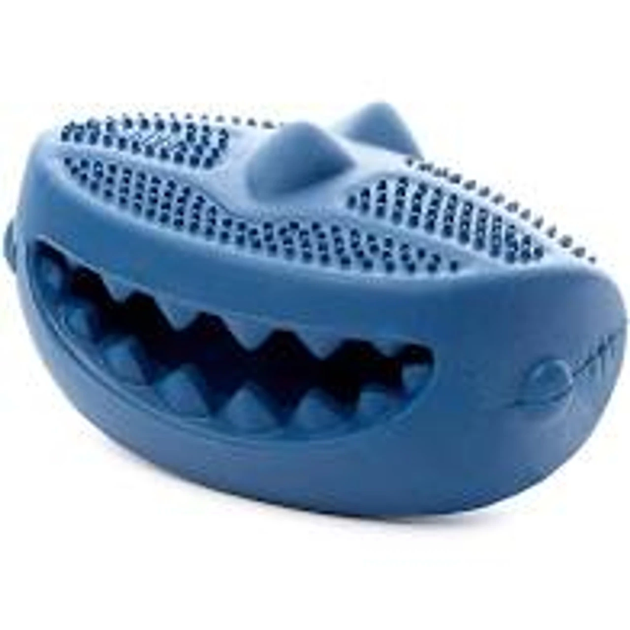 The durable, rubber Hammer Fed Shark can dispense your pup’s favorite treats and scrub your pup’s teeth while they chew!