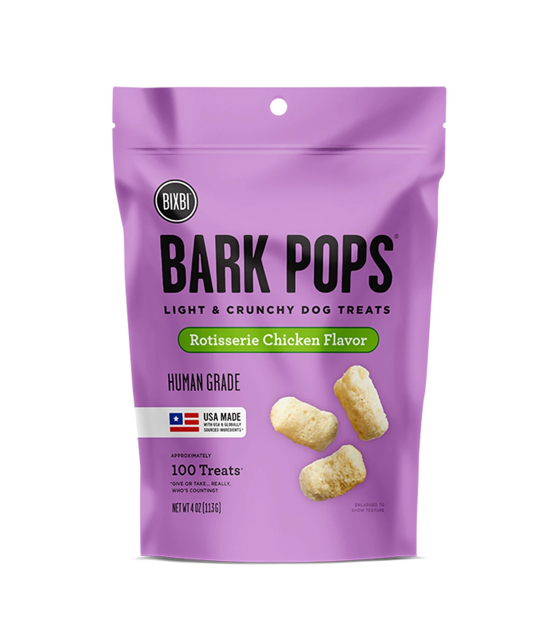 Bark Pops are a big treat with a few measly little calories. They’re made with a short list of human-grade ingredients and expertly baked to give them that satisfying crunch that dogs go crazy for. With flavors like Rotisserie Chicken, Sweet Potato & Apple and White Cheddar, they’re made to satisfy even the pickiest of pup’s palates. And with approximately 100 treats in every bag, they’re an affordable, guilt-free way to treat your dog every day.