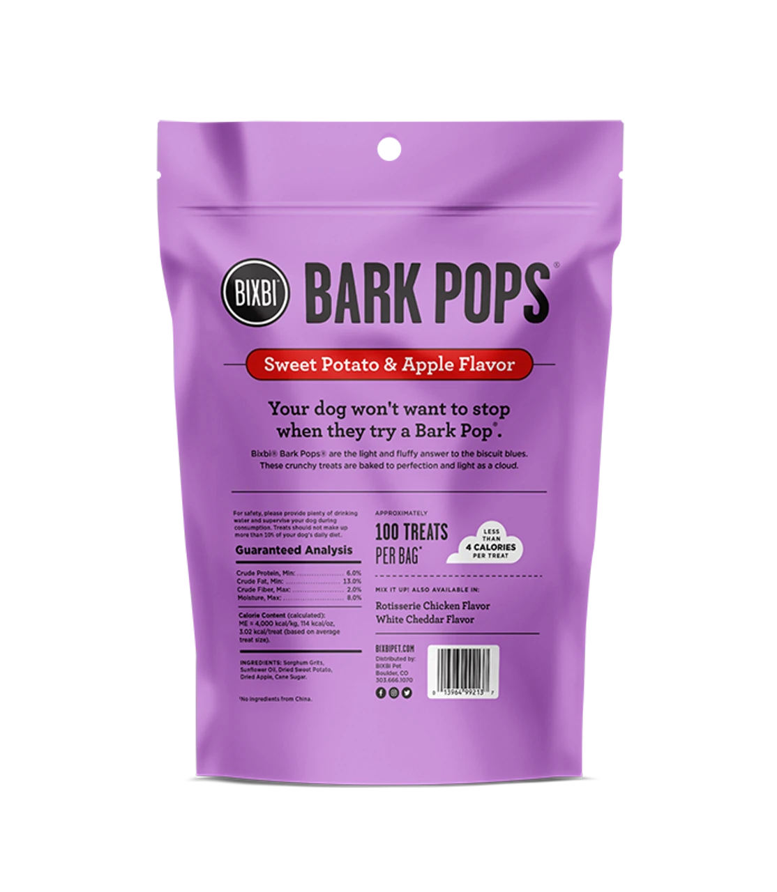 Bark Pops are a big treat with a few measly little calories. They’re made with a short list of human-grade ingredients and expertly baked to give them that satisfying crunch that dogs go crazy for. With flavors like Rotisserie Chicken, Sweet Potato & Apple and White Cheddar, they’re made to satisfy even the pickiest of pup’s palates. And with approximately 100 treats in every bag, they’re an affordable, guilt-free way to treat your dog every day.