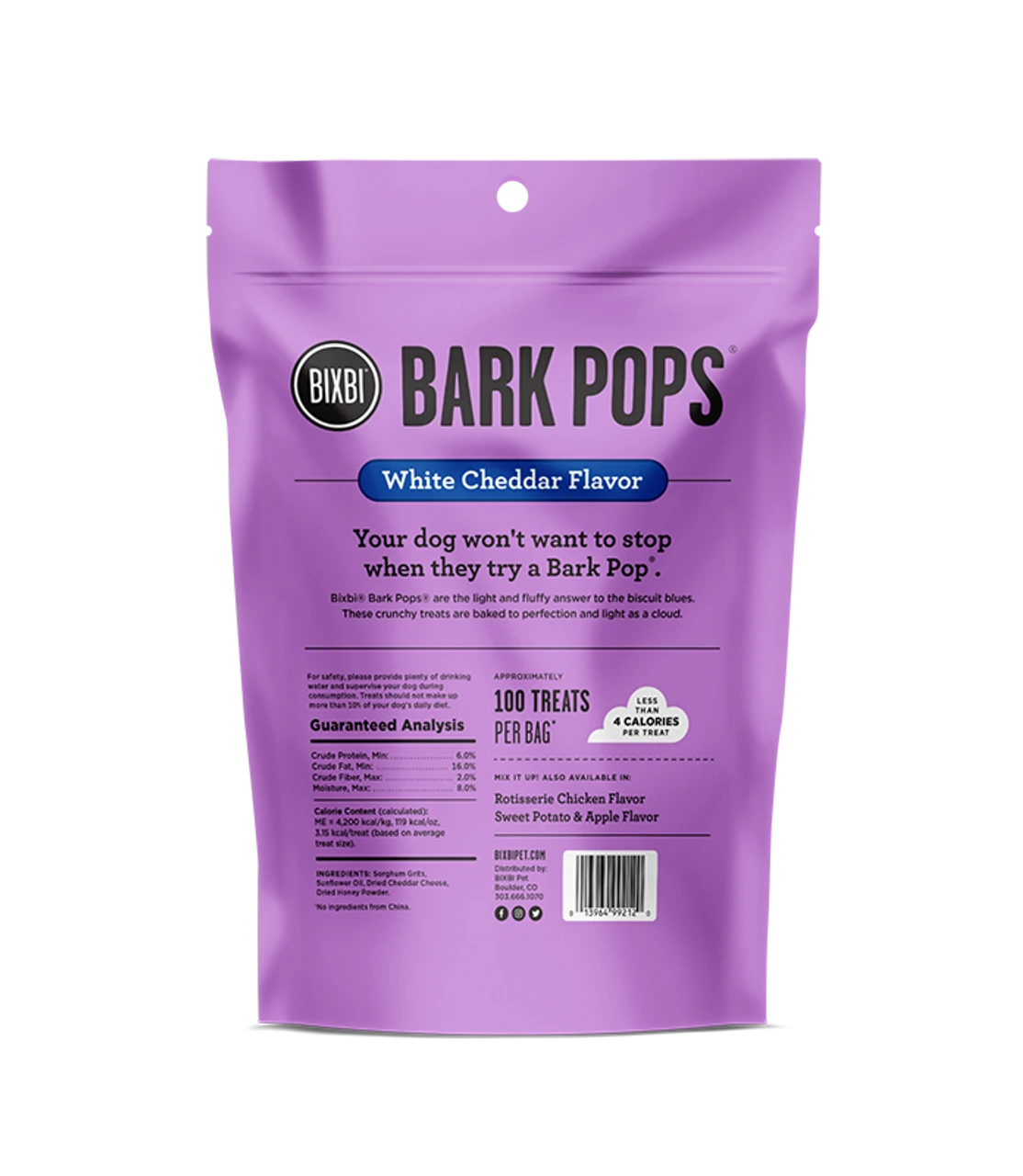 Bark Pops are a big treat with a few measly little calories. They’re made with a short list of human-grade ingredients and expertly baked to give them that satisfying crunch that dogs go crazy for. With flavors like Rotisserie Chicken, Sweet Potato & Apple and White Cheddar, they’re made to satisfy even the pickiest of pup’s palates. And with approximately 100 treats in every bag, they’re an affordable, guilt-free way to treat your dog every day.