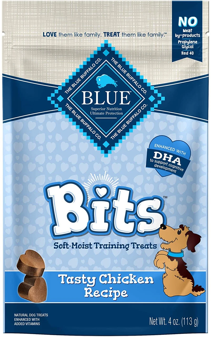 BLUE Bits training treats are soft, moist and extremely tasty. Packed with delicious, protein-rich chicken, plus DHA to support cognitive development, BLUE Bits are a healthy and nutritious reward that your dog will love.