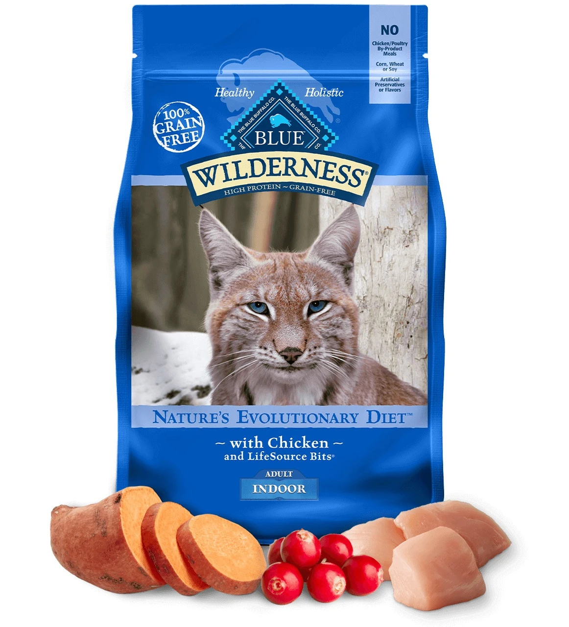 - Our natural Blue Wilderness is holistically formulated to support the needs of indoor cats. It starts with the carefully balanced calories in our ingredients to help them maintain a healthy body weight.