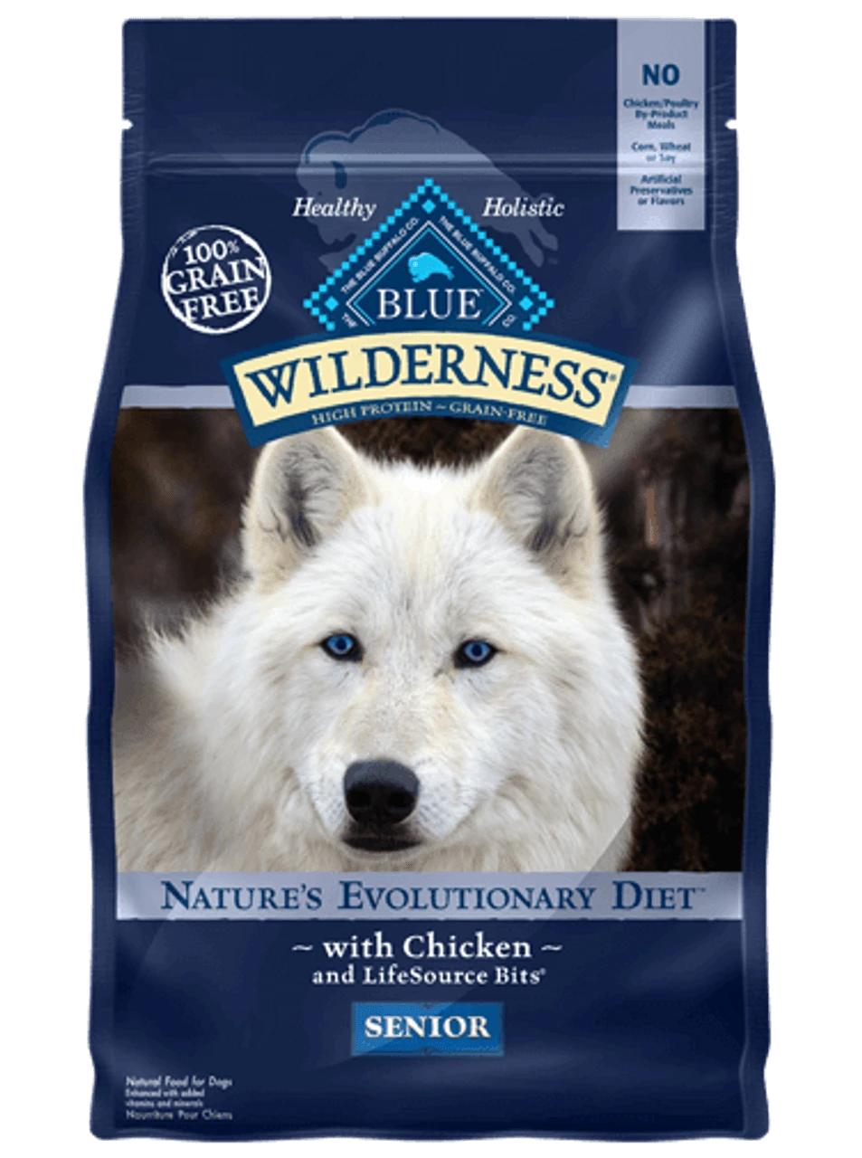 Inspired by the diet of wolves, true omnivores whose endurance is legendary, BLUE Wilderness Senior is a grain-free, protein-rich food that contains more of the delicious chicken your dog loves.