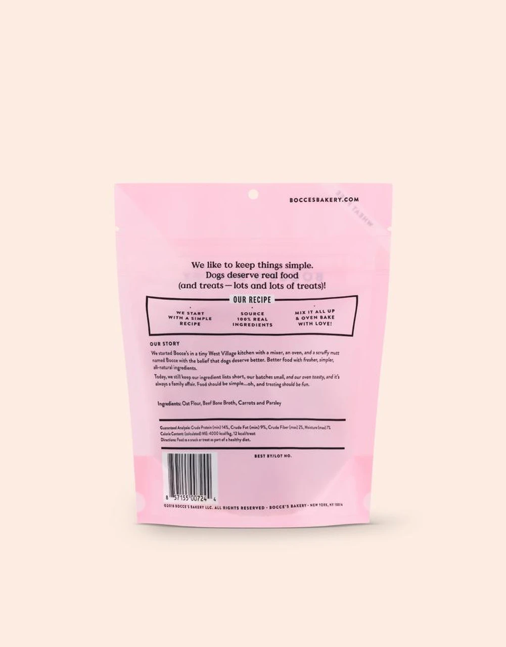 Ingredients:Â Oat Flour, Beef Bone Broth, Carrots, Parsley