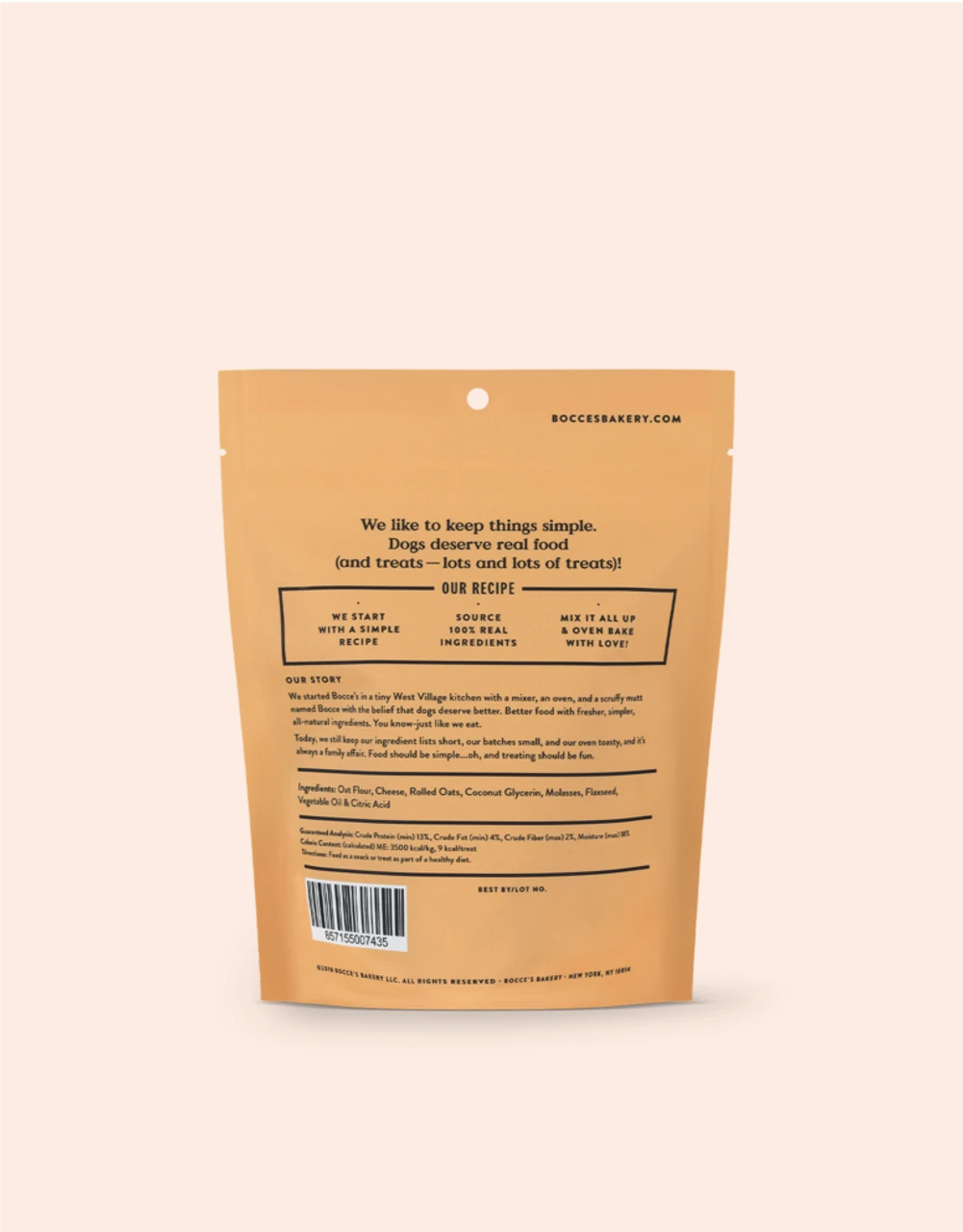 Ingredients: Oat Flour, Cheese, Rolled Oats, Coconut Glycerin, Molasses, Flaxseed, Vegetable Oil, Citric Acid