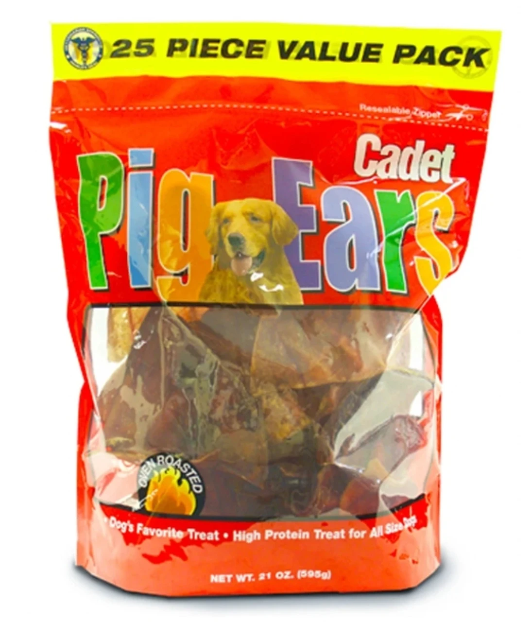 Your dog will love these naturally delicious Cadet Pig Ears! Made of 100% real pork, our single-ingredient ear dog chews are oven-roasted to bring out the delicious meat flavor dogs crave. Plus, these healthy dog chews are high in protein and help clean teeth and gums through mechanical chewing action to promote dog dental health. Perfect for keeping your best friend occupied, these highly digestible and long-lasting dog chews offer plenty of chewing entertainment.