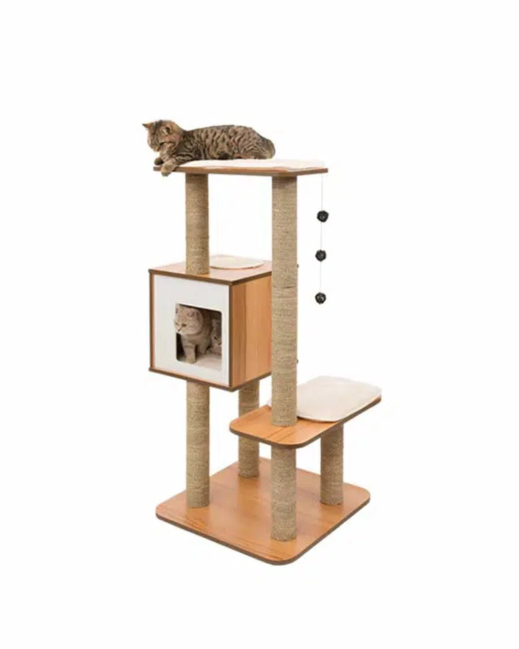 2. High-rise cat towers with natural scratching posts and mats