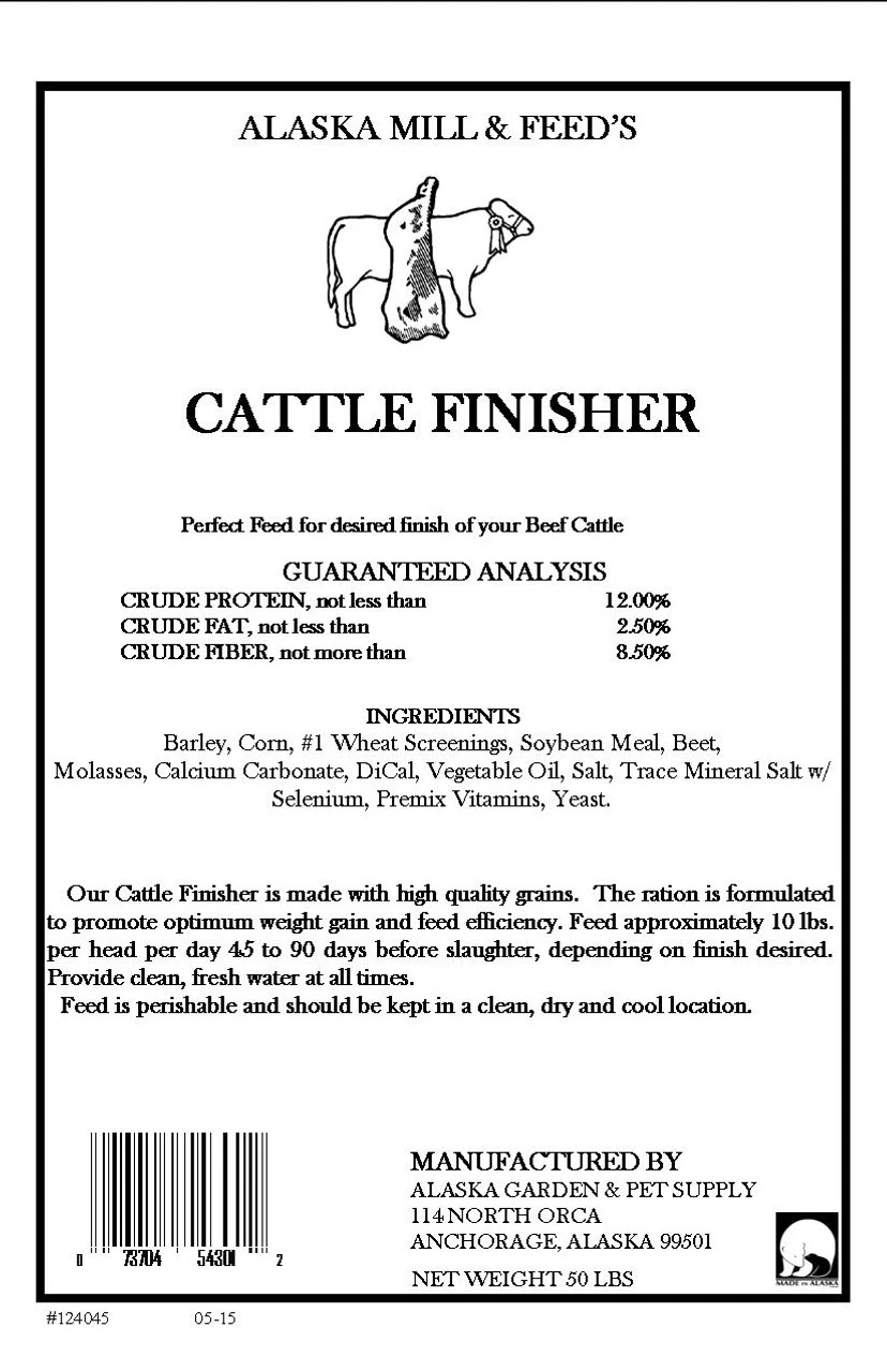 • Alaska made 12% Cattle Finisher formula made to promote optimum weight gain and feed efficiency in cattle