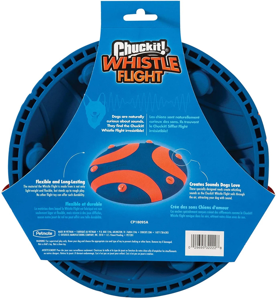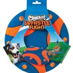 Make fetch happen® with the Chuckit!® Whistle Flightâ„¢. This unique fetch toy creates a continuous whistle sound as it flies through the air, keeping your dog interested and engaged during fetch. Specially designed reeds create the whistle sound as wind whips through the whistle chambers when thrown. The Whistle Flight is made of lightweight, flexible natural rubber that is gentle on your hands and your dogs’ mouth. The Whistle Flight was carefully engineered to securely house the whistles within the flyer to provide the best sound performance as well as keep your pet safe.