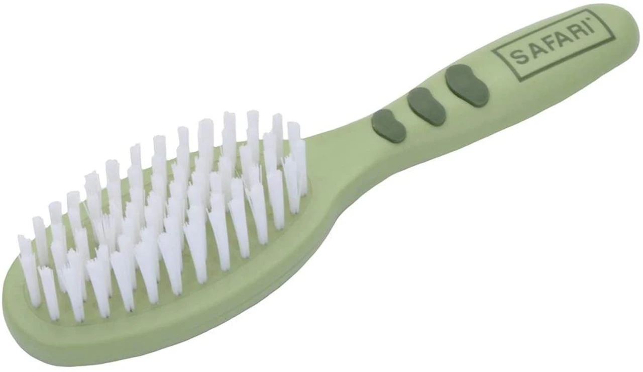 Improve the appearance of your cat’s coat with the Safari® Bristle Cat Brush! The unique quality bristles provide a beautiful, shiny coat and also help to reduce shedding. Regular grooming also reduces hairballs, keeping your cat looking and feeling great. Plus, the bamboo handle provides a comfortable, secure grip during grooming. Whether your cat has short or long hair, this brush will work well with their coat. For long-haired cats, separate the hair in sections, brushing each area until all mats and tangles have been removed. For short-haired cats, use long strokes, brushing in the direction of hair growth. Add this brush to your cat’s grooming routine for a healthy, beautiful coat!