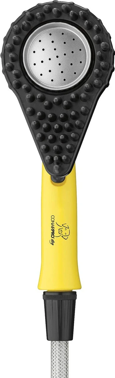 ConairPRO Deluxe Indoor/Outdoor Pet Washer is designed for gentle washing and deep cleansing of all dog breeds. Features dual settings — full body spray or cone-shape curtain spray — and massaging soft rubber fingers for giving your pup the full spa treatment. Includes 8-foot reinforced hose and 2 connectors for use in shower or tub, or quick connect to an outside hose.
