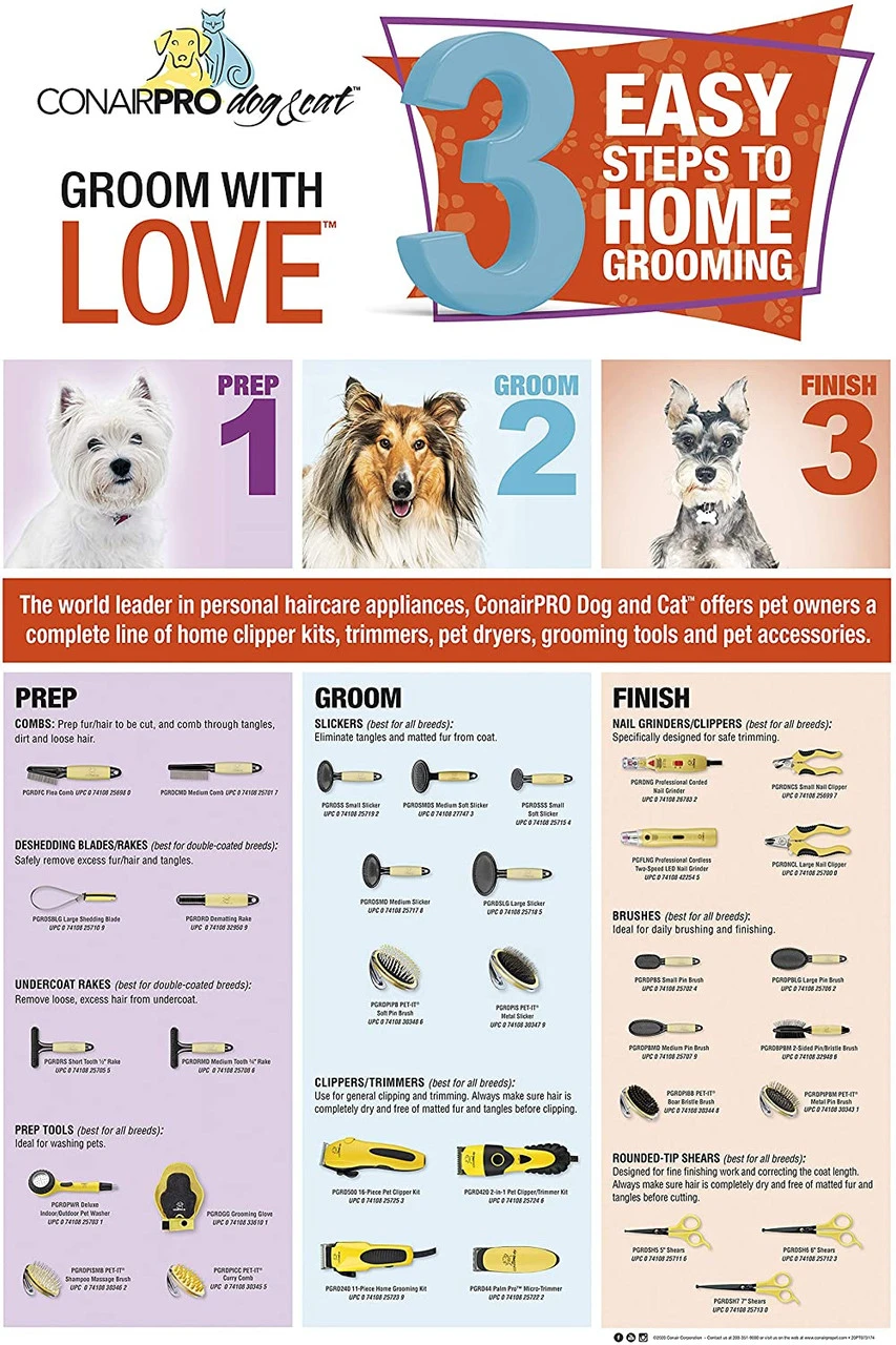 - MADE TO LAST: ConairPRO Dog & Cat pet grooming tools are designed with high-quality materials for durability & performance. Our brushes, combs, shedding tools, nail grinders & more are made to last