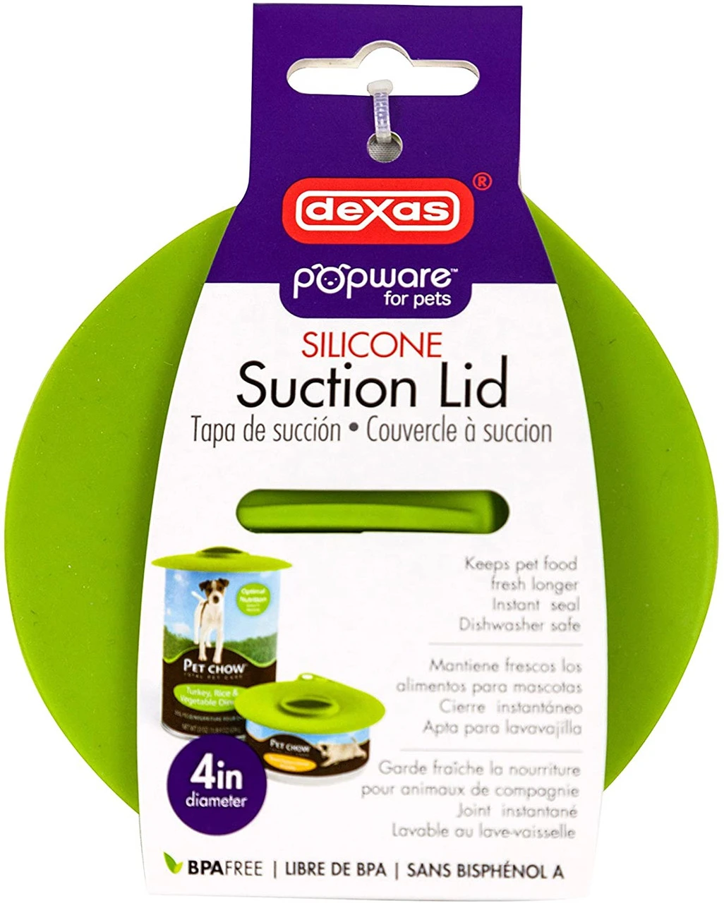 - No need to transfer pet food to another container for storage: use the Dexas suction lid instead