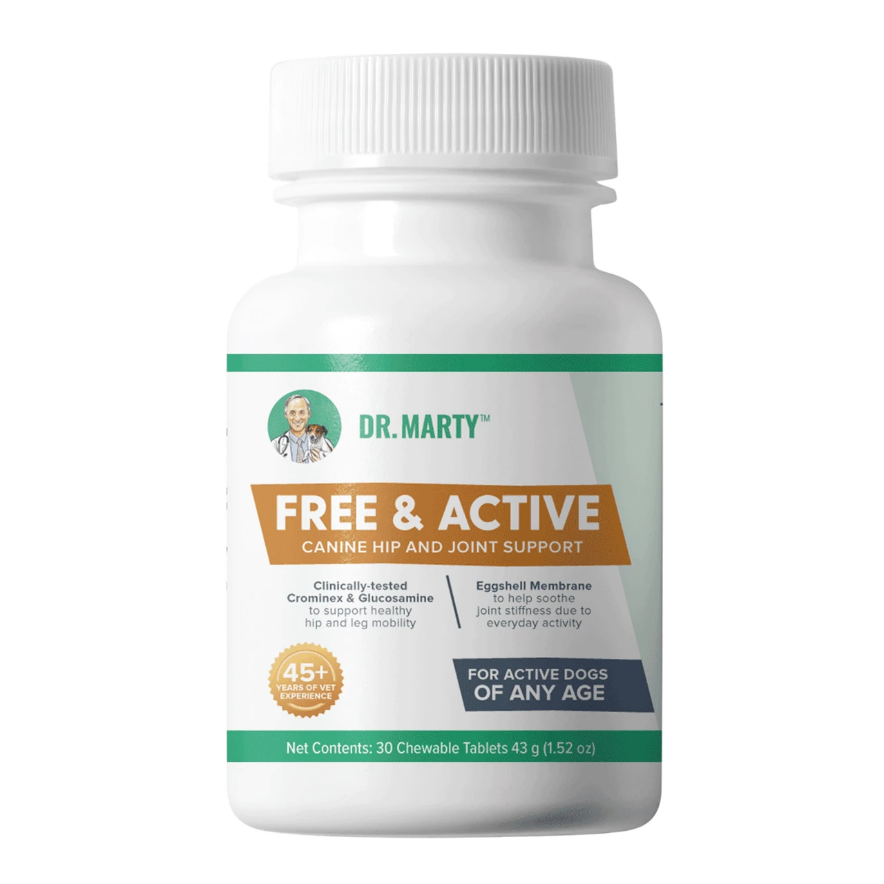 80% of dogs over age 8 struggle with joint issues which can make it uncomfortable for them to exercise, run and play.1 Free & Active can help target joint discomfort from multiple angles and support healthy mobility, so your dog can do all their favorite activities with you — even as they age.