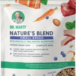 Nature’s Blend, Dr. Marty’s Premium Freeze-Dried Dog Food, is a nutrition-packed formula designed to give your dog a healthier, happier life. We blend a variety of meats, fish, ranch-raised beef and duck, and other protein sources with fruits and vegetables for the balanced, complete nutrition your dog needs. We receive all our ingredients fresh, then gently freeze dry them so they’re bursting with flavor and nutrition.
