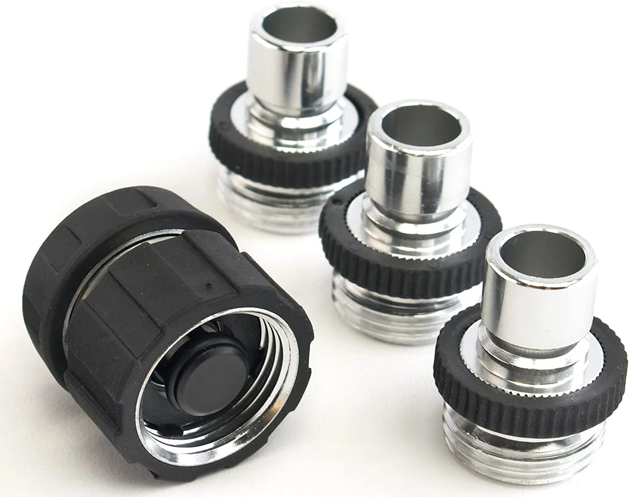 The Aluminum Quick Disconnect eliminates the hassle of threaded connections between the hose and accessories. Made with lightweight aluminum construction for ease of use. Can use with any garden hose thread accessory. The Aluminum Quick Disconnect Set includes: 1 Hose and 3 tool adaptors; Manufactured guarantee.