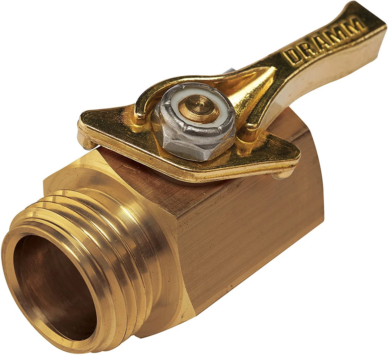 - Dramm Heavy-Duty Brass Shut-Off designed to provide fingertip water control at the end of your water hose