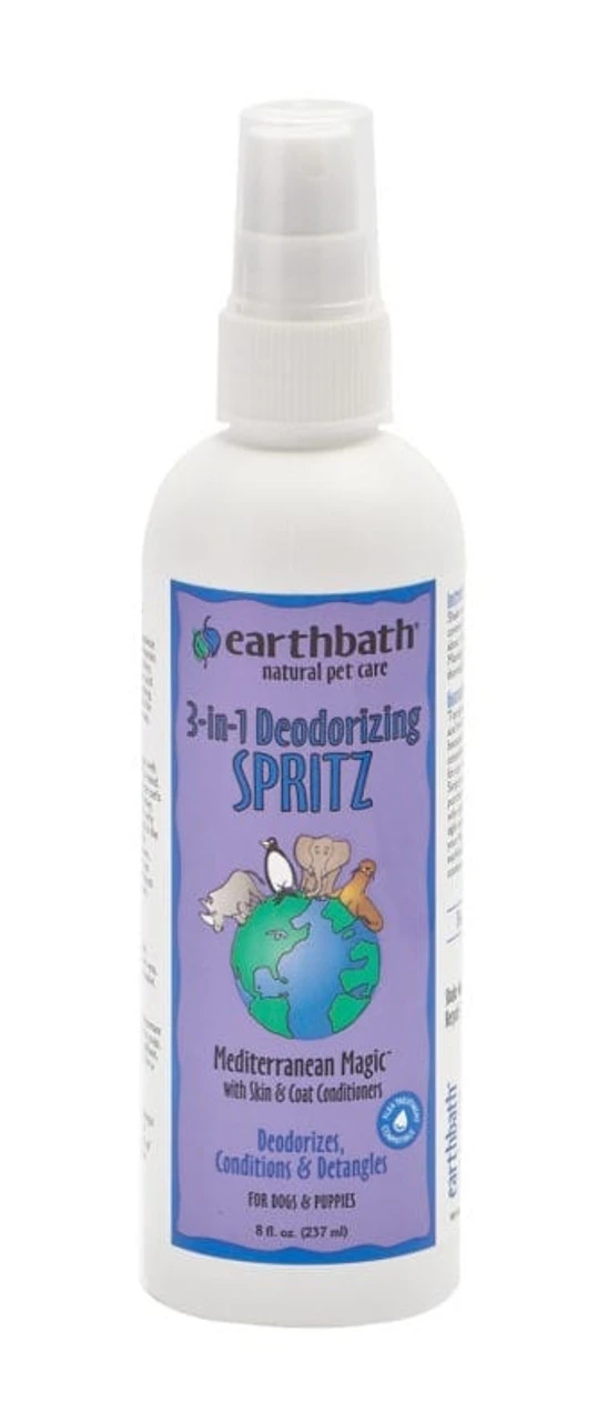 This 3-in-1 Deodorizing Spritz naturally conditions and detangles coats, while deodorizing with the fresh botanical fragrance of rosemary oil. Organic aloe vera and vitamin E leave the coat exceptionally soft and shiny. Use between baths to freshen, condition and detangle, or as a finishing spray after bathing your dog with earthbath® shampoo. Safe for dogs over 6 weeks old. Not for use on cats.