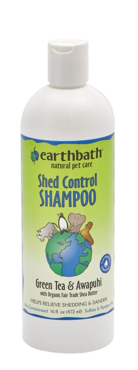 Earthbath® blended the finest antioxidants and skin moisturizers to create this Shed Control Shampoo. This potent formula contains organic fair trade shea butter, omega-6 fatty acids, and the extracts of green tea leaf, ginseng, and awapuhi to nourish & detoxify skin and coat while helping to control excessive shedding, dander and associated allergens. Naturally, this pH-balanced soap-free shampoo will thoroughly clean & deodorize, leaving your pet brilliantly soft and heavenly scented.