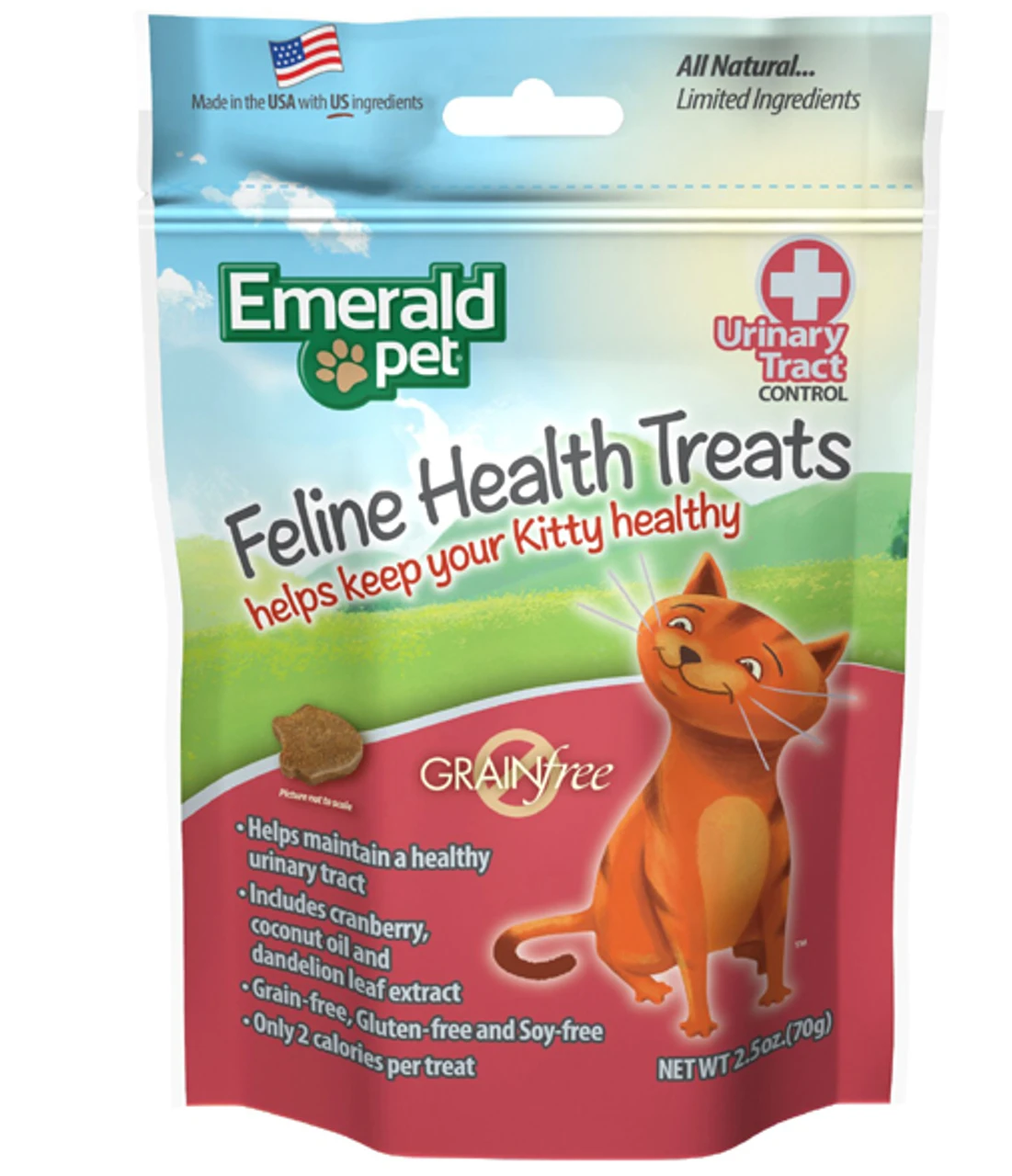 Emerald Pet Feline Health Urinary Tract Control Cat Treats are all natural, soft and chewy treats made with tasty chicken liver to help keep your kitty healthy and happy. Each fun fish-shaped treat contains cranberry, coconut oil and dandelion leaf extract to support healthy urinary tract functions. Sourced and made in USA.