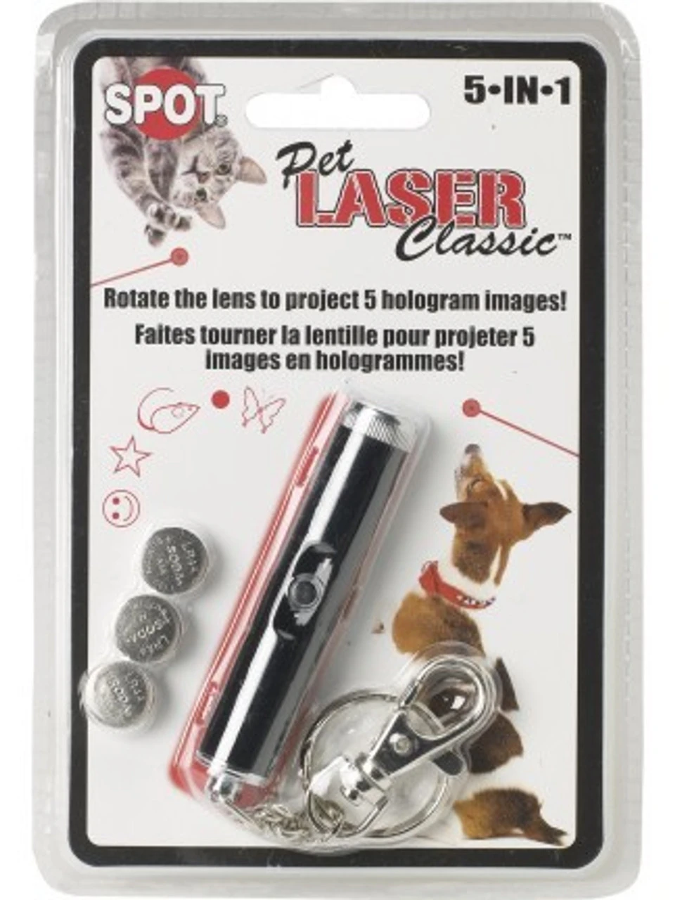 The 5 in 1 Pet Laser provides 5 hologram images.