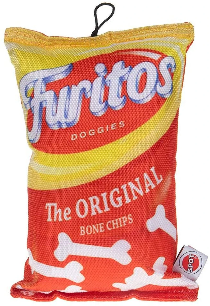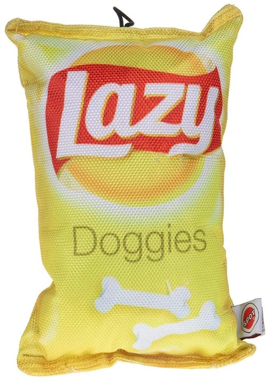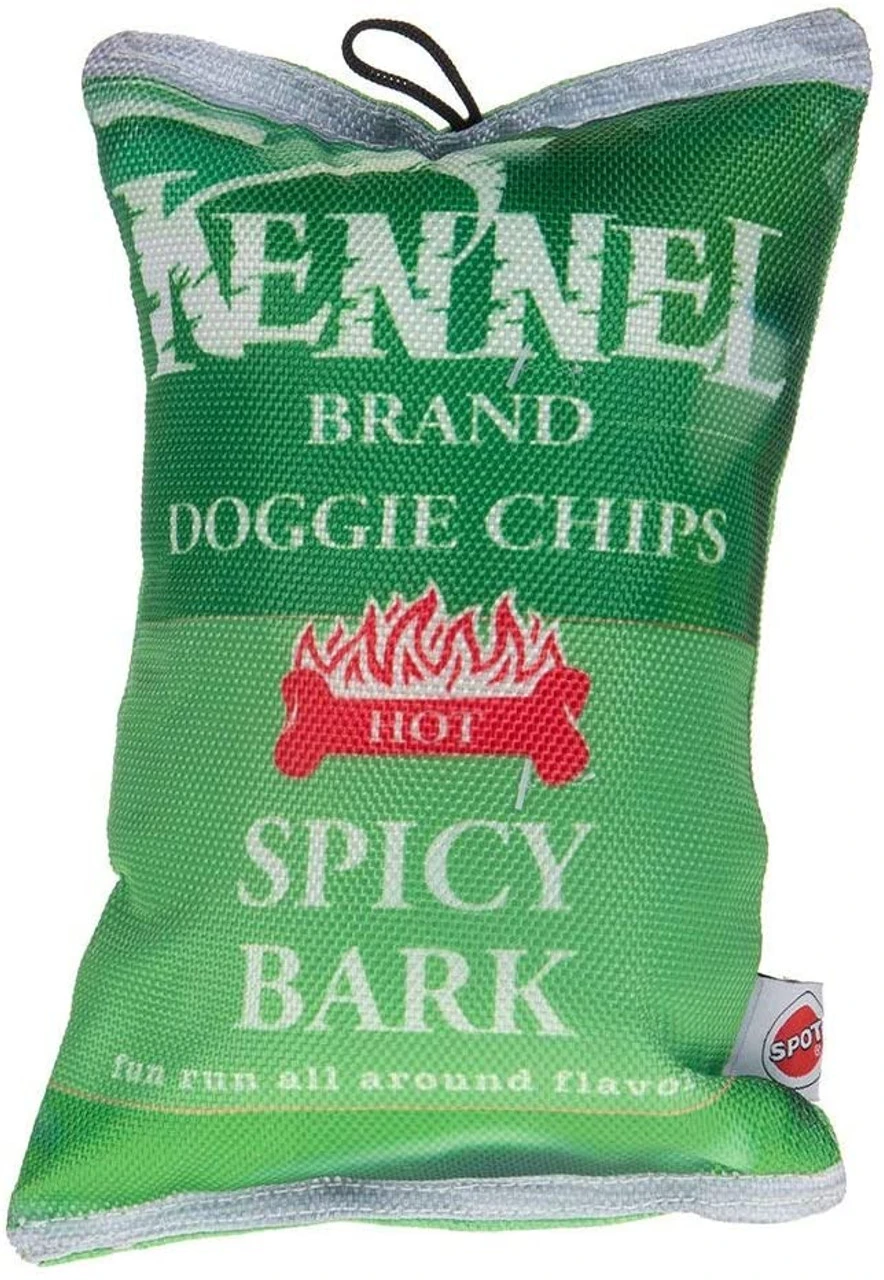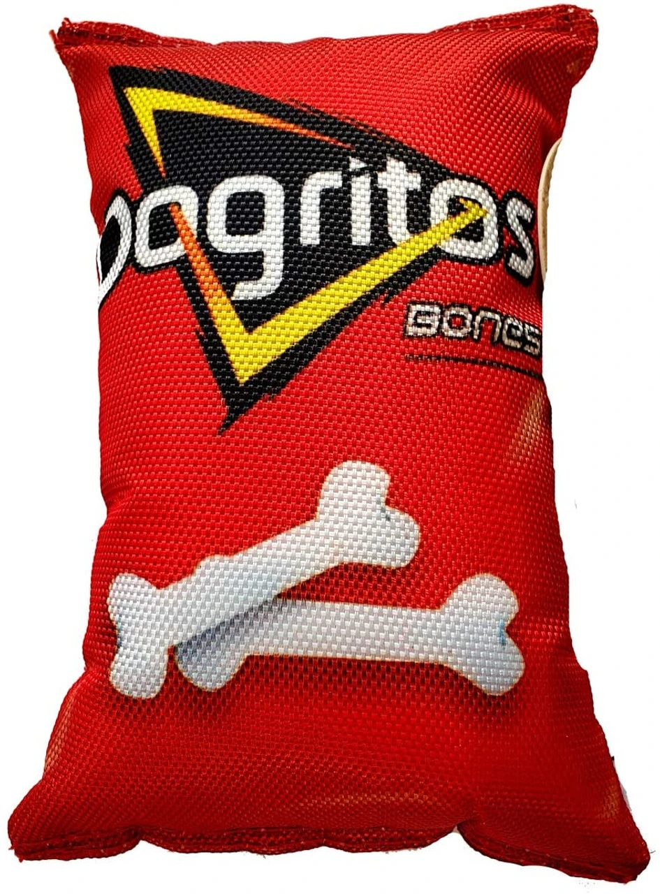 The perfect snack chip without the calories! Made of durable canvas with cute screen printing. Perfect for playtime or nap time as a pillow! Squeaker is hidden in every bag!