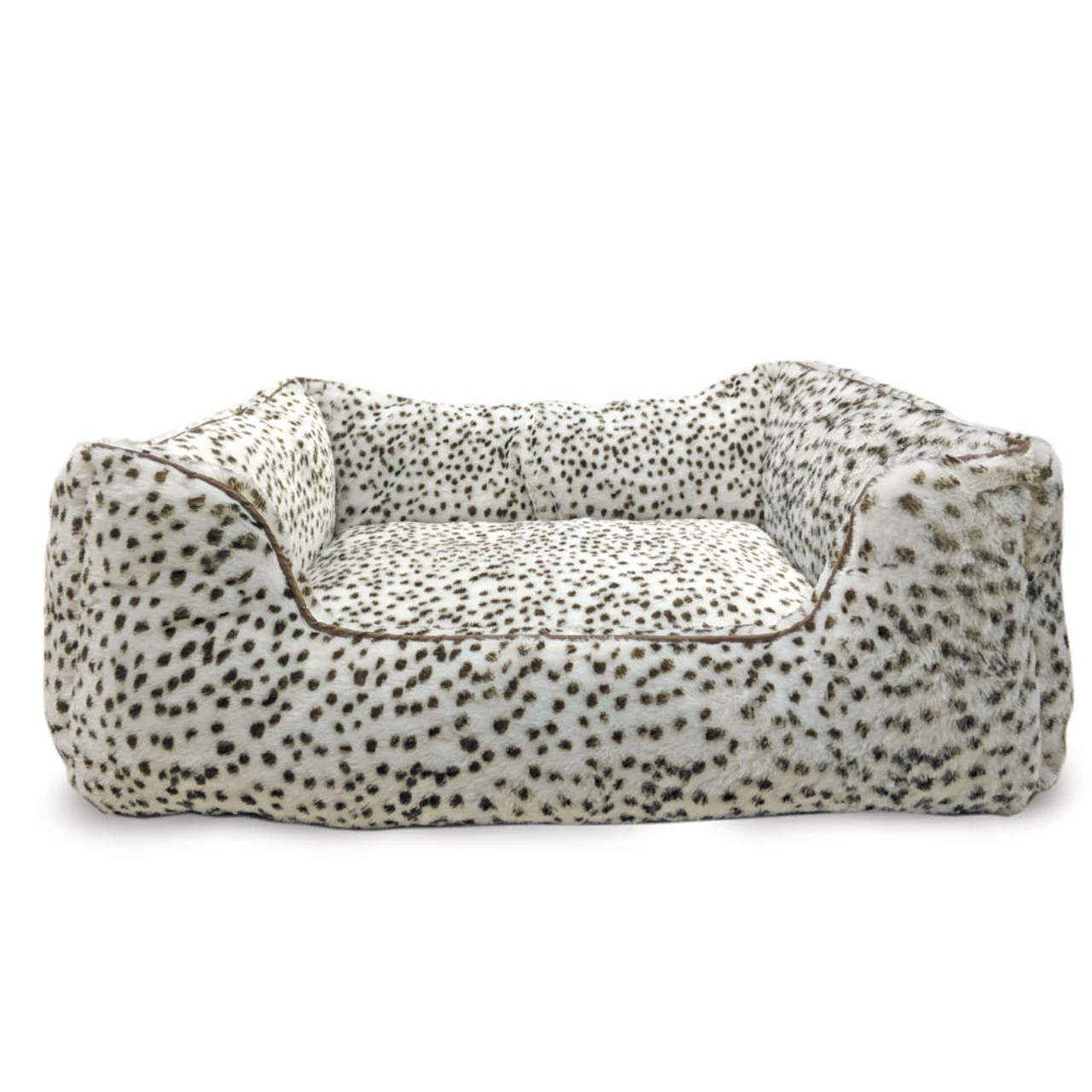 Soft plush leopard design. Easy step in with high walls for comfort and security. Made with 100% recyclable fill and machine washable.