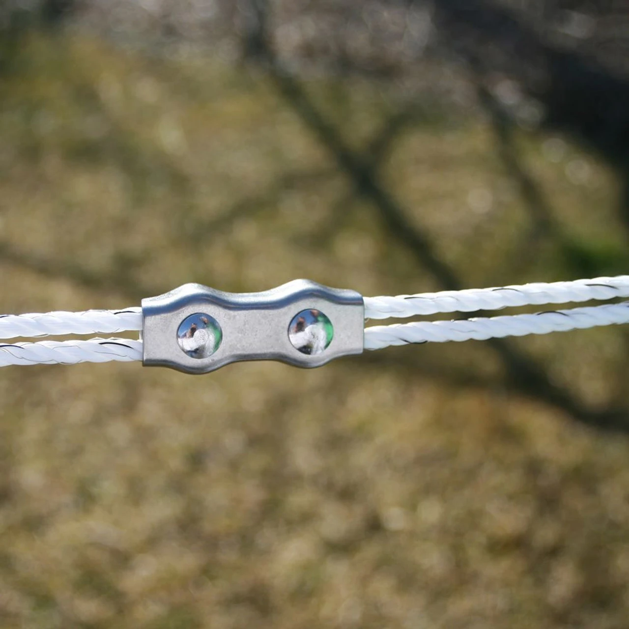 Our Fi-Shock® Polyrope Connector is made of stainless steel and allows you to connect one polyrope to another so you can reach all of your electric fence posts!