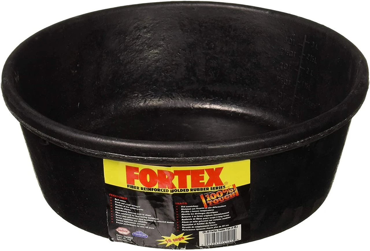 For feeding smaller animals. 100% rubber resists weather cracking. Can also be used to measure oats. With capacity markings. Approximate dimensions: 11″ top diameter, 4″ height.