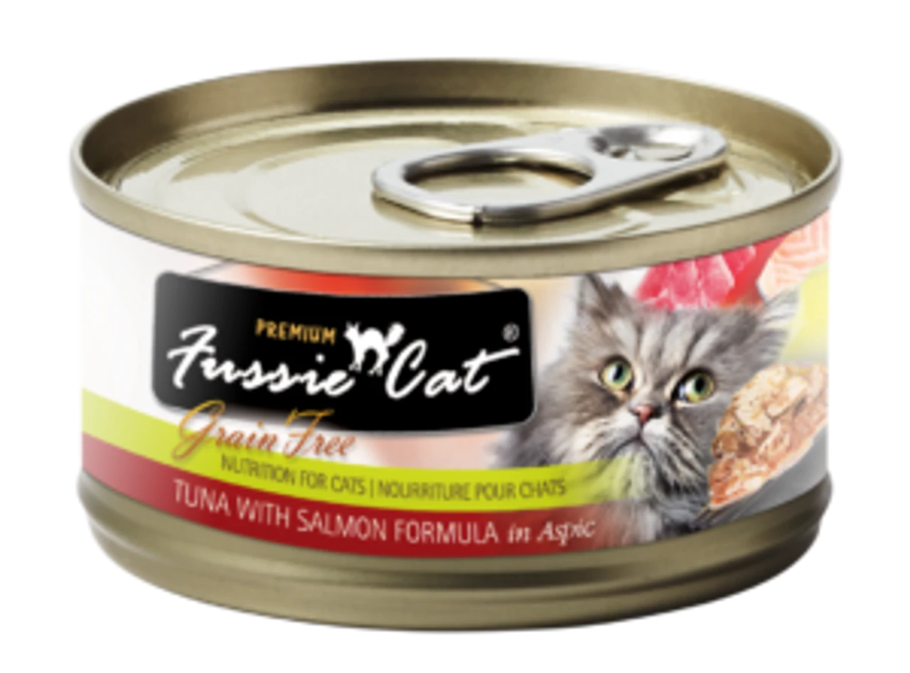 Knowing that cats need meat protein to survive, Fussie Cat developed formulas that they call Physiologically Correct. As true carnivores, their bodies are extremely efficient in processing meat, so 20% of their diet should come from animal proteins. Fussie Cat’s foods start with meat, are low in carbs and include a complete spectrum of essential vitamins and minerals. You can be sure your kitty’s getting all the necessary amino acids, protein and other nutrients.