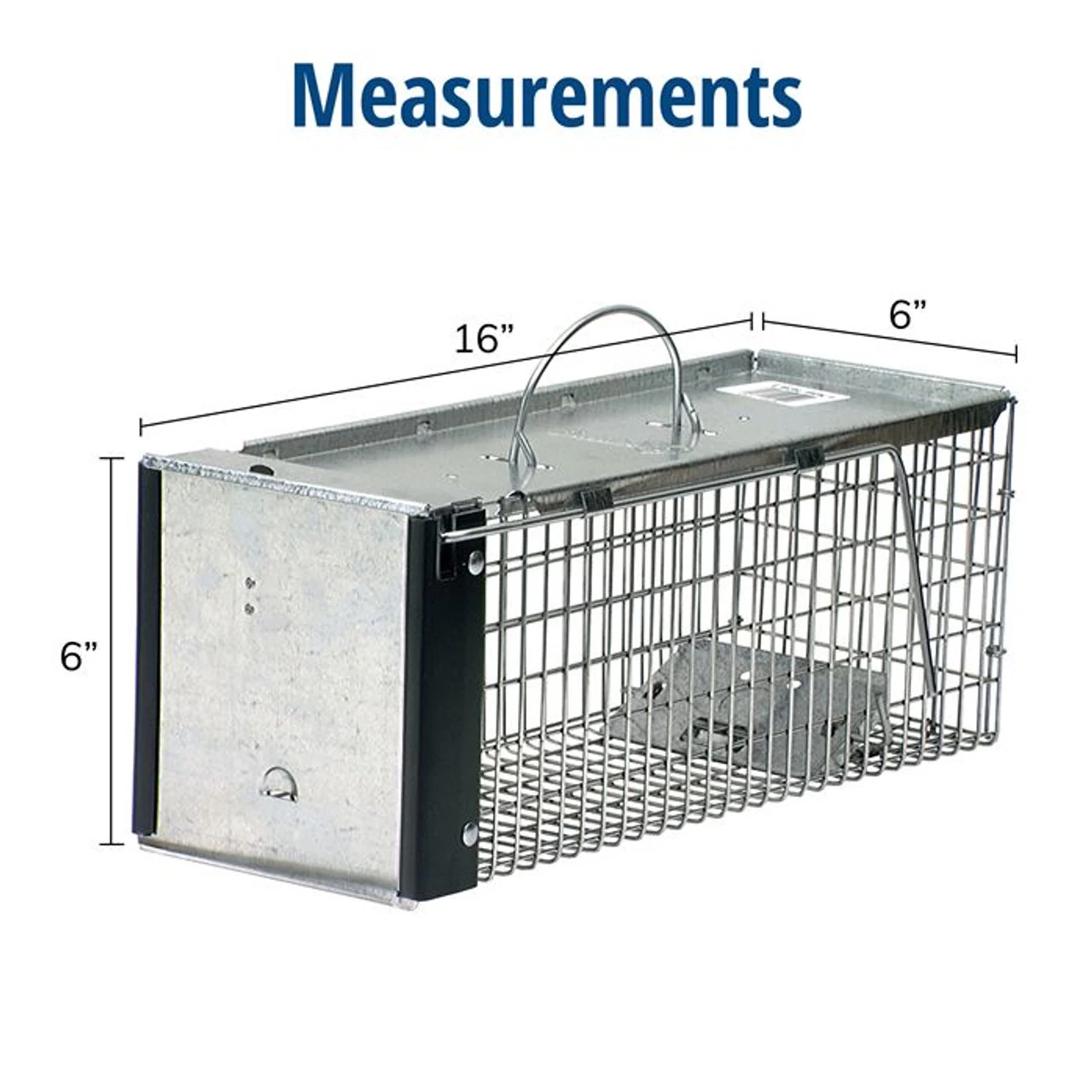 Havahart® X-Small 1-Door Trap captures small rodents humanely with this Havahart® X-Small 1-Door Trap. Crafted to efficiently trap chipmunks, voles, weasels, squirrels, and rats, this 16-in galvanized steel cage lets you catch and transport small critters for live relocation. The sturdy build and single-door design minimize direct contact with the animal inside and simplifies setup.