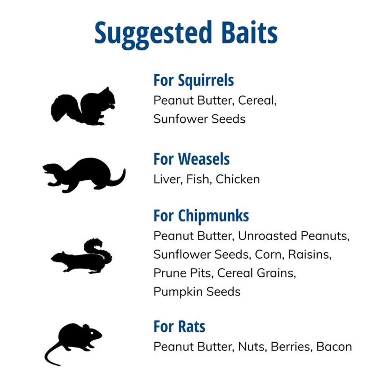 Designed by Trapping Professionals the X-Small 1-Door live animal trap is built by experts in the field to ensure a quick, safe trapping experience each time. Its durable steel construction ensures it’s suitable for flying squirrels, weasels, chipmunks or virtually any small rodent. The sensitive trip plate ensures even the lightest animals are able to trigger its operation and the mesh openings are small, ensuring curious creatures can’t steal the bait from the outside.