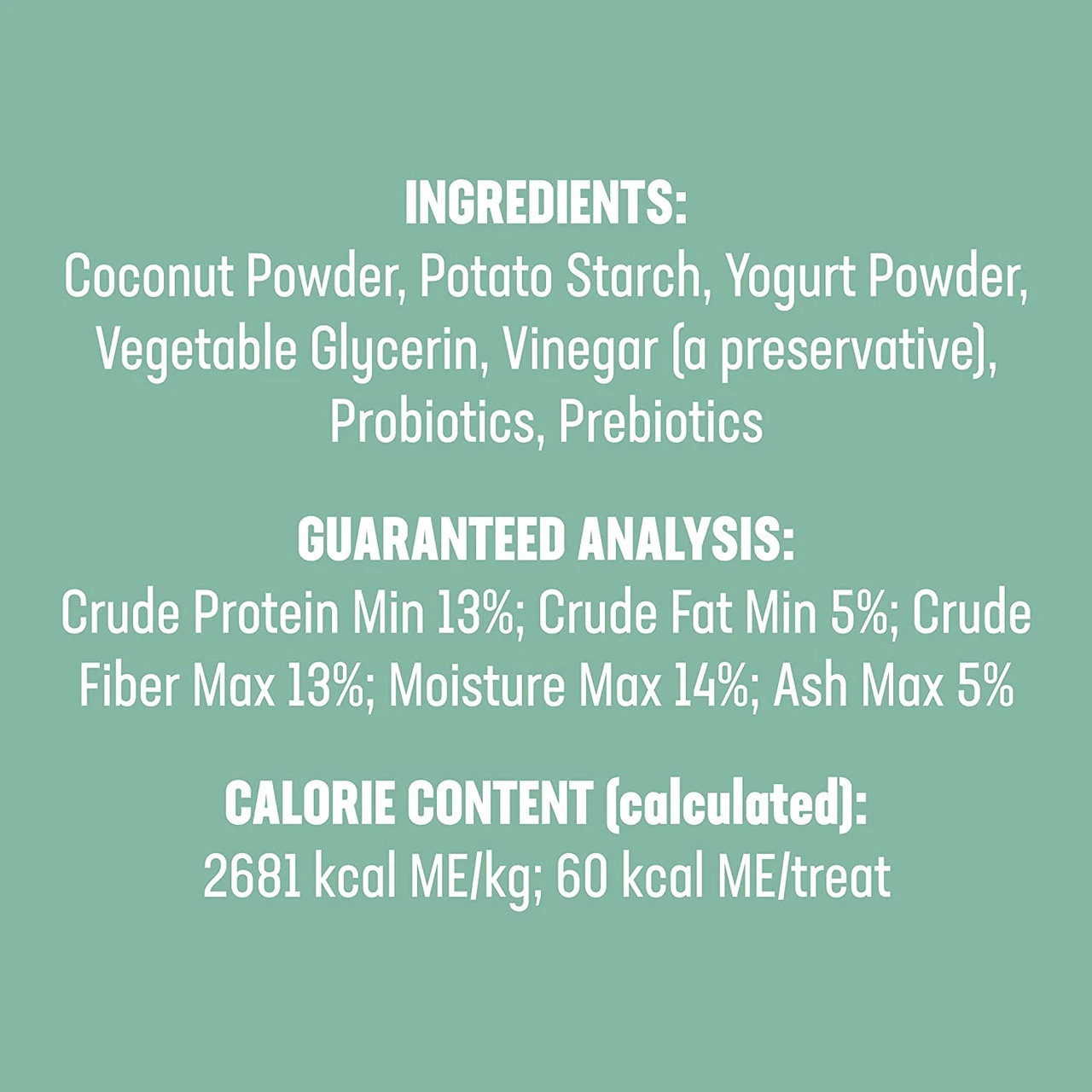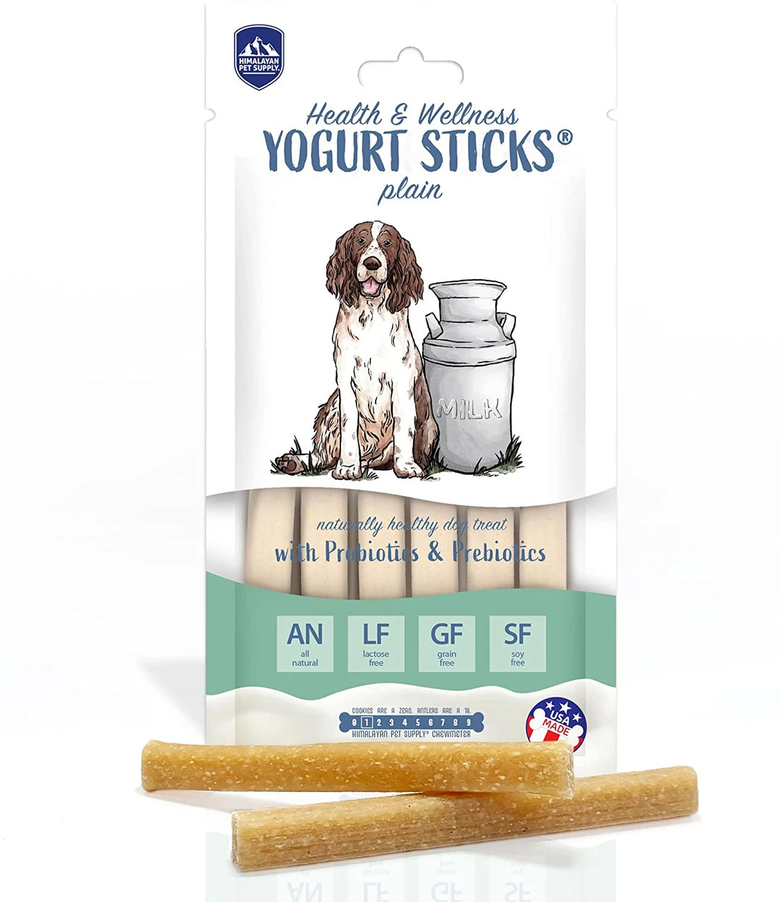 These health conscious pup treats are loaded with Prebiotics and Probiotics that help with gut health. They don’t have any funky preservatives or artificial colors. These Yogurt sticks are grain, corn, soy and gluten free.Â