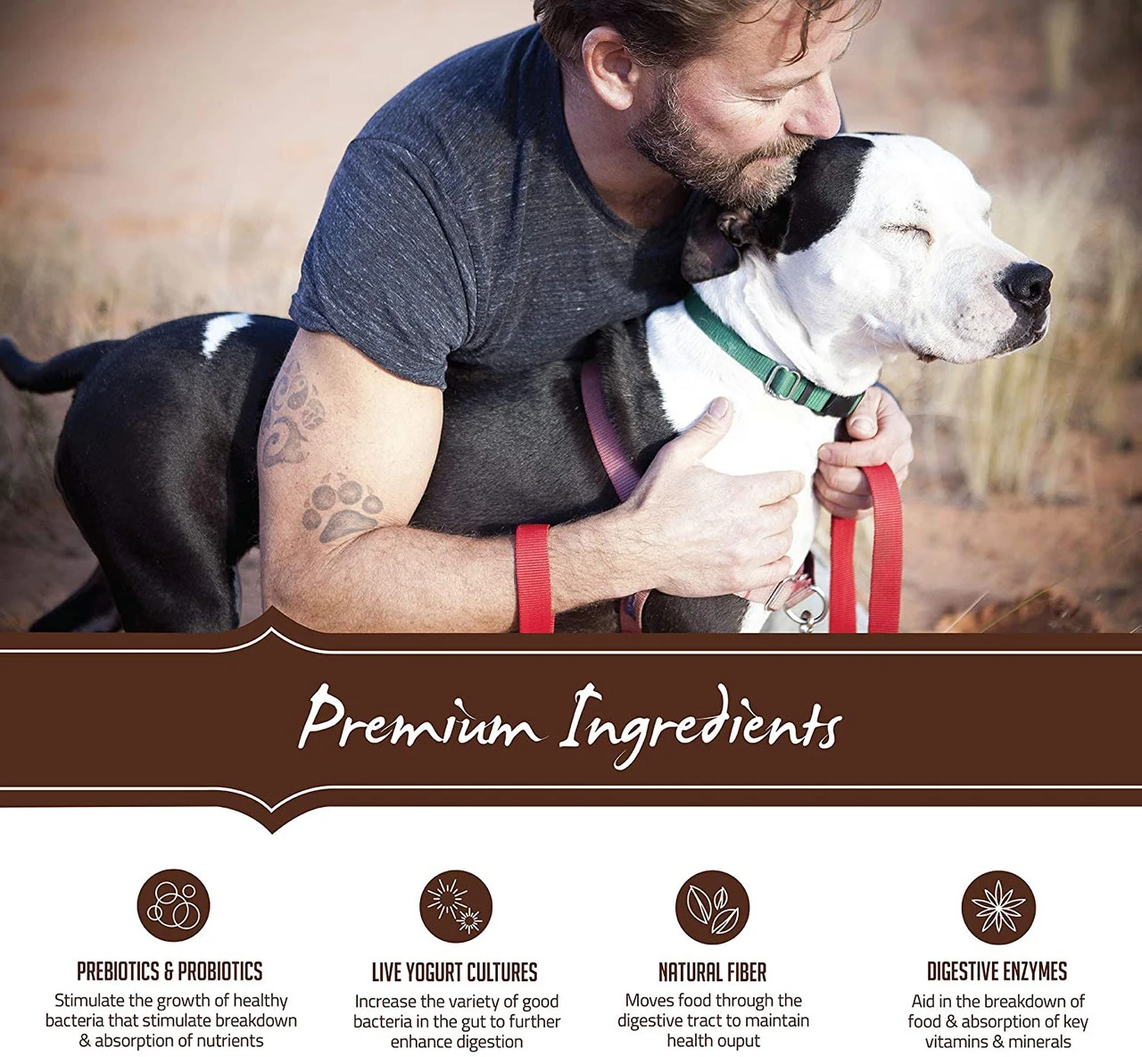 - DIGESTIVE HEALTH: Optimal levels of protein plus prebiotics and probiotics, live yogurt cultures, digestive enzymes, and natural fiber in this dog food enhance digestion for your large breed dog