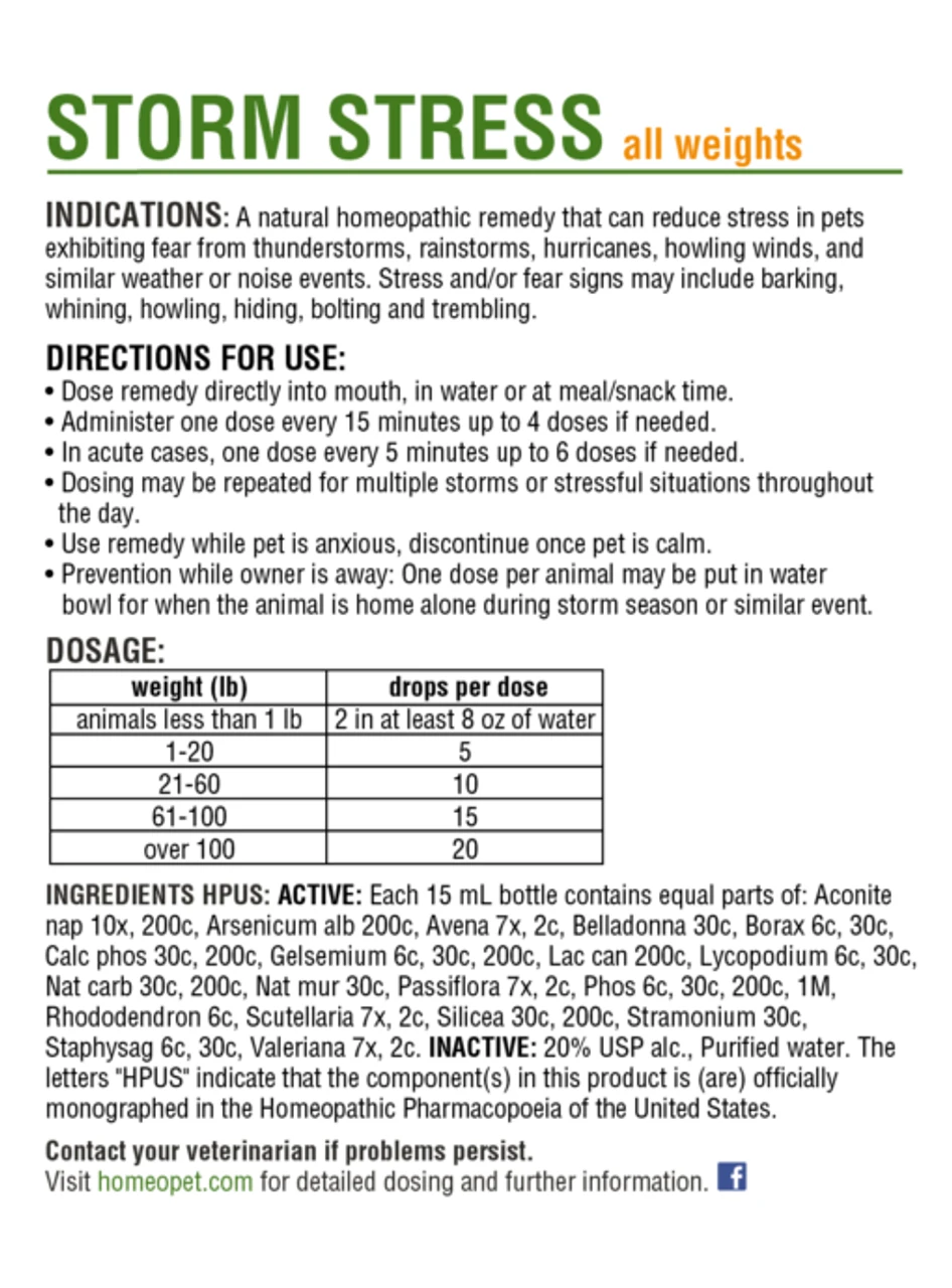 Can reduce stress in pets exhibiting fear from thunderstorms, rainstorms, hurricanes, howling winds, and similar weather or noise events.