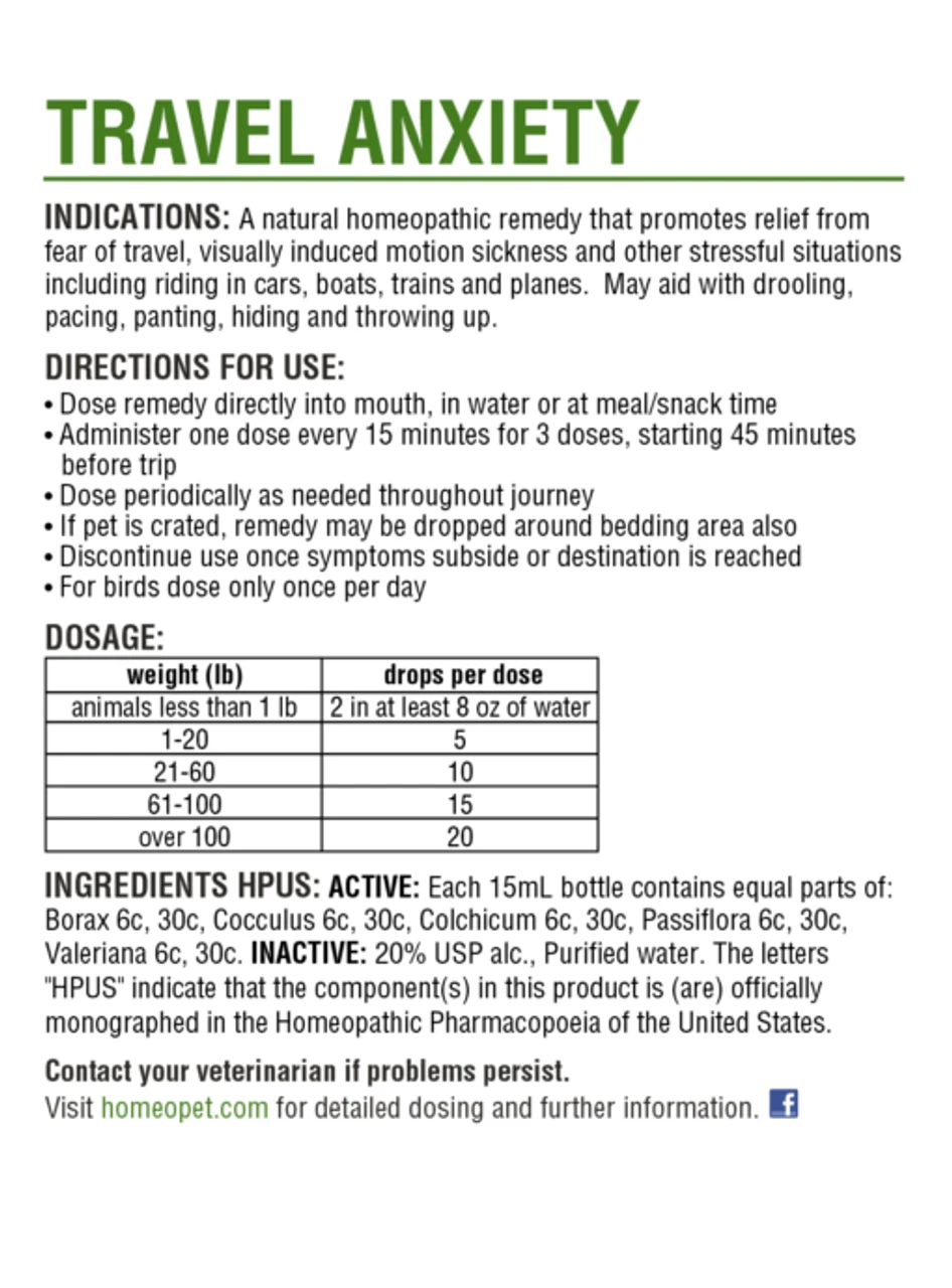 Promotes relief from fear of travel, visually induced motion sickness and other stressful situations for pets, including traveling in cars, boats, trains, planes.
