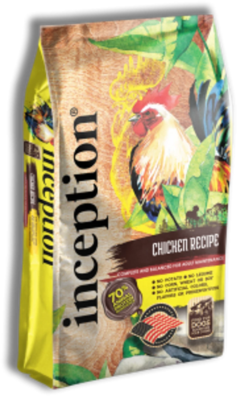 InceptionĀ® Chicken Recipe for dogs is formulated to meet the nutritional levels established by the Association of American Feed Control Officials (AAFCO) for all life stages except the growth of large size dogs (70 pounds or more as an adult).