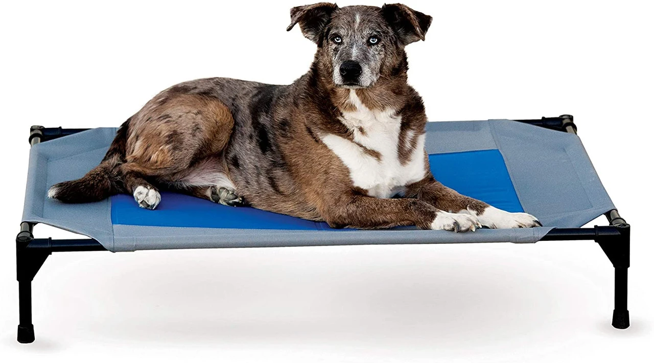 - ELEVATED COOLING DOG COT: Raised cooling dog bed helps pets stay cool in warm spring and summer months with its refillable coolin’ center keeps pets off the ground with 7″ ground clearance