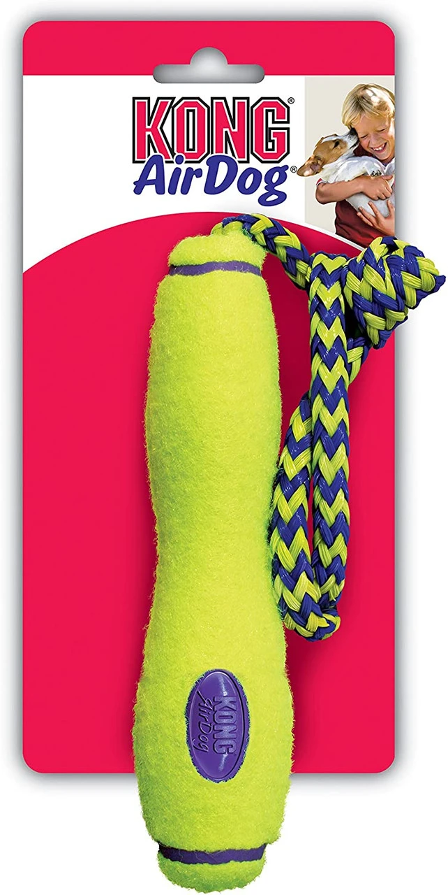 KONG AirDog combines two classic dog toys -the tennis ball and the squeaker-to create the perfect fetch toy. The non-abrasive, high-quality material will not wear down dogs’ teeth. Find your dog’s favorite AirDog shape and let the games begin.