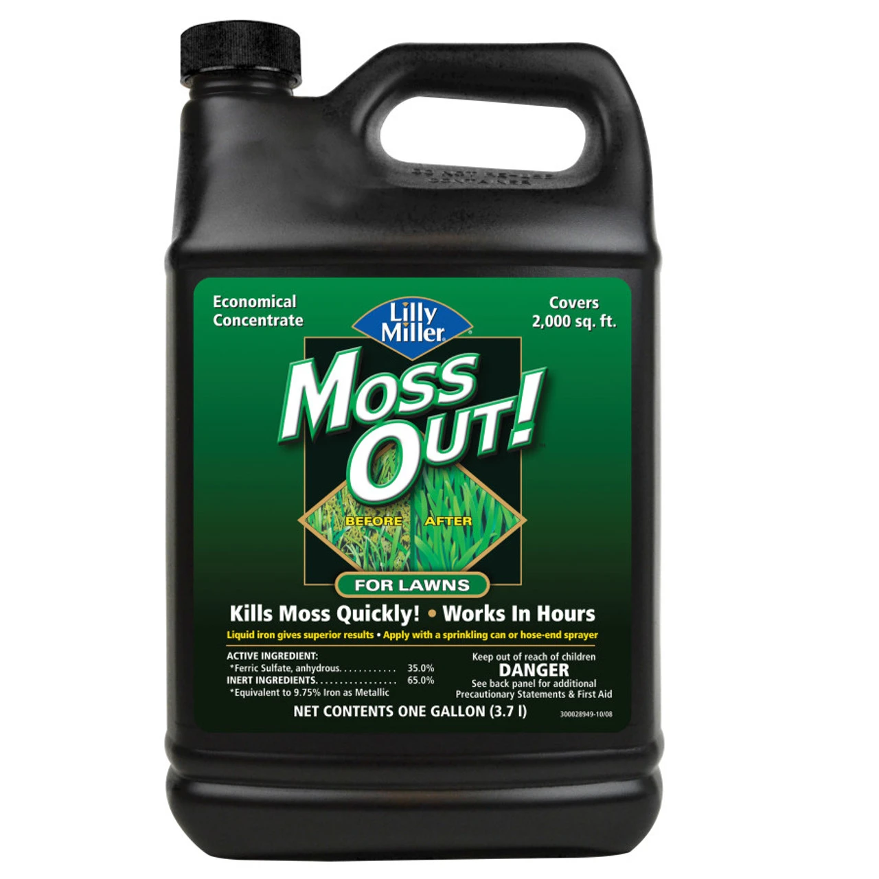 Concentrate kills lawn moss quickly, working in just hours. Liquid iron gives superior results. Economical concentrate covers 2,000 square feet. This product is for lawns only.