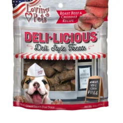 Deli-Licious® Deli Style dog treats are meaty and delicious USA-made dog treats in classic New York deli flavors. Roast Beef and Cheddar Recipe Deli-Licious treats are crafted with care in small batches using beef as the main ingredient.